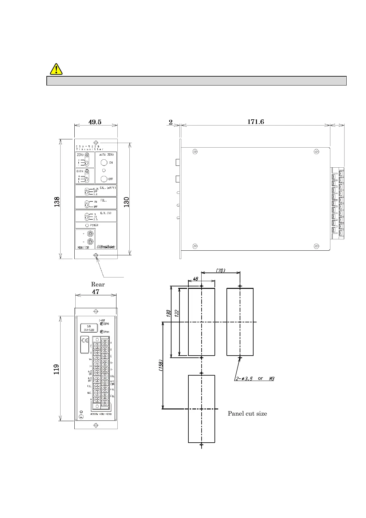 Install based on the following sizes to set up this instrument, and secure the space for surroundings of this container.