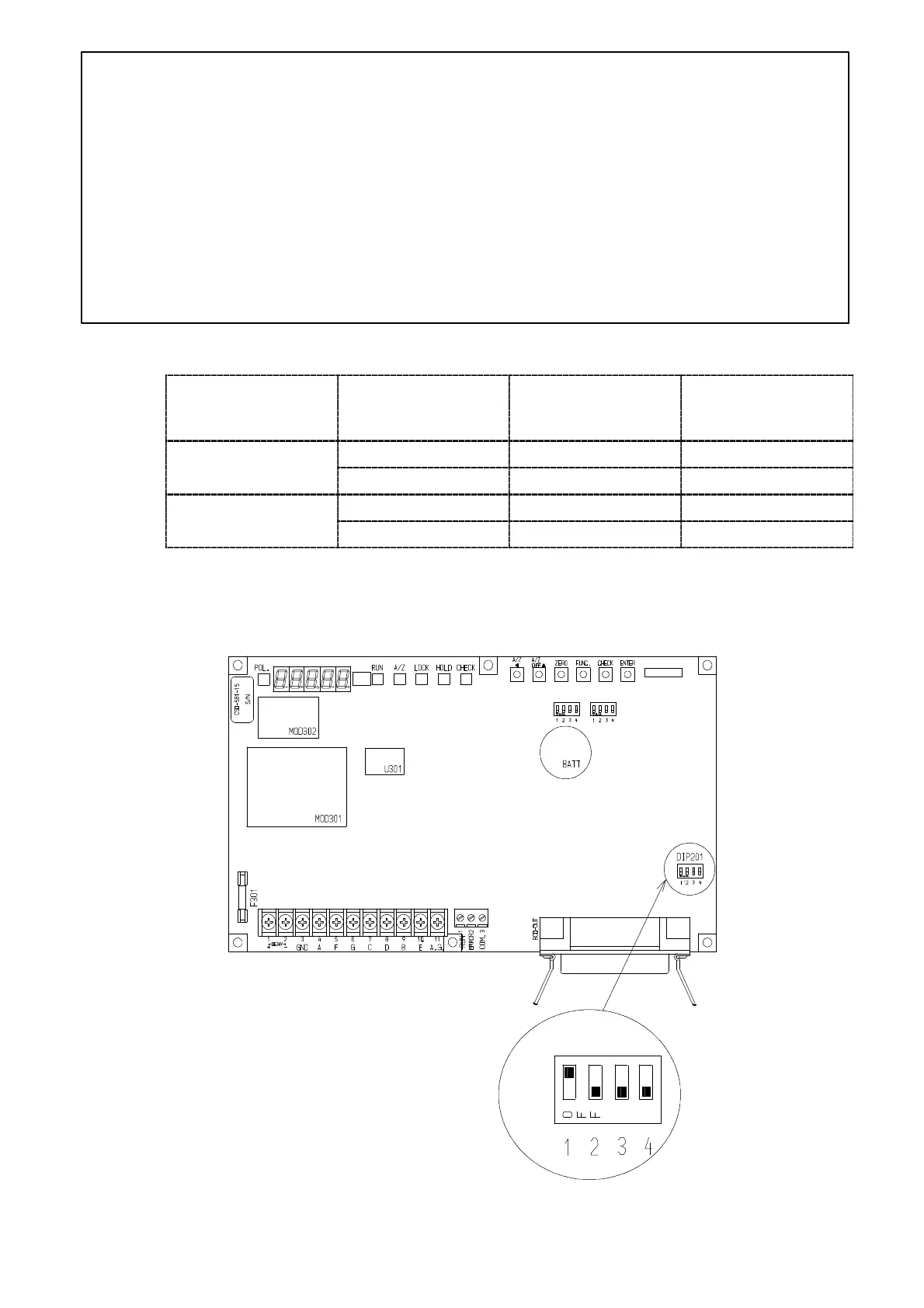 The selection of P.C. logic, width for the instrument can be performed with the DIP201 “DIP SW