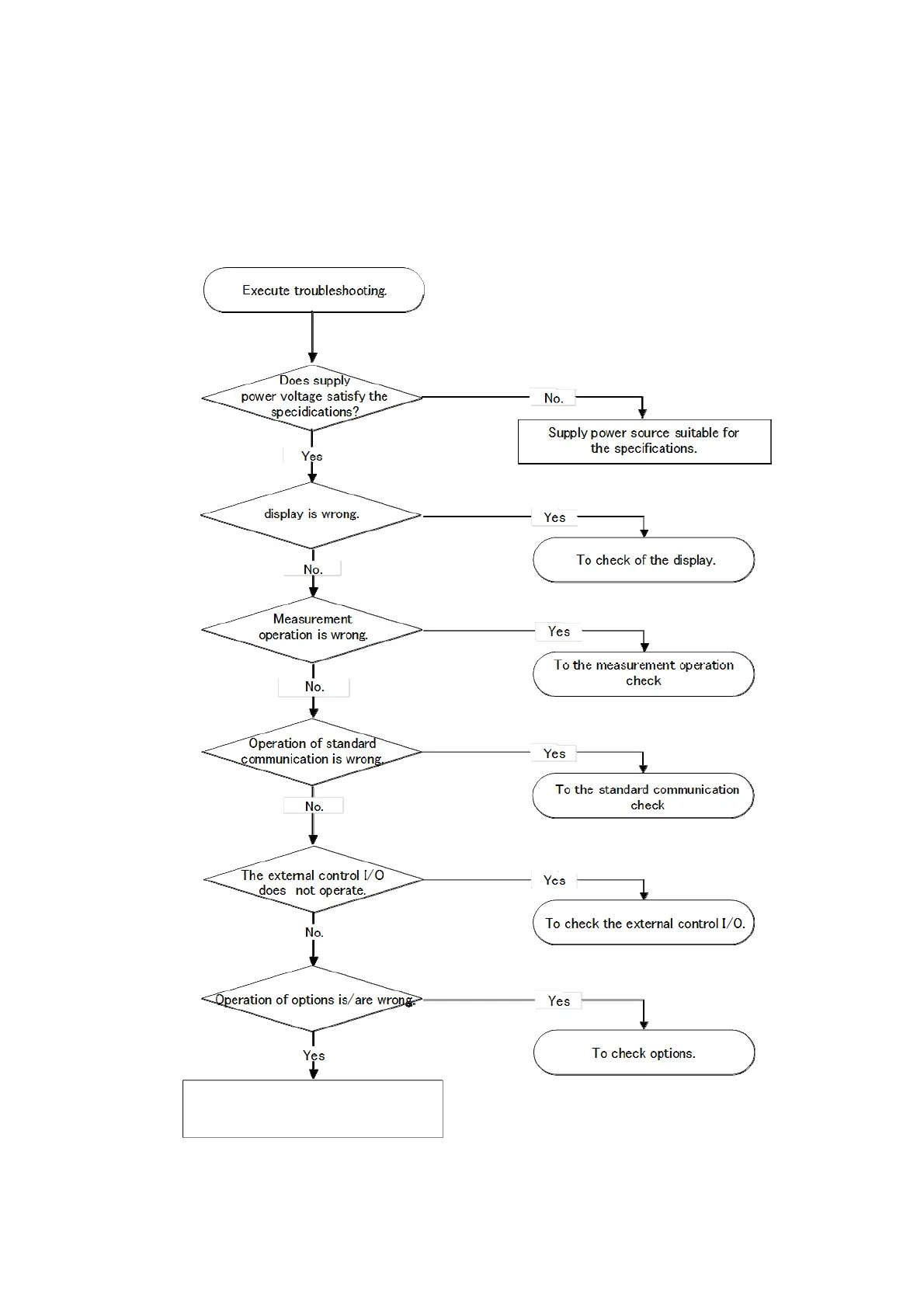 When abnormal point(s) is/are found during the operation of the instrument, check by the following