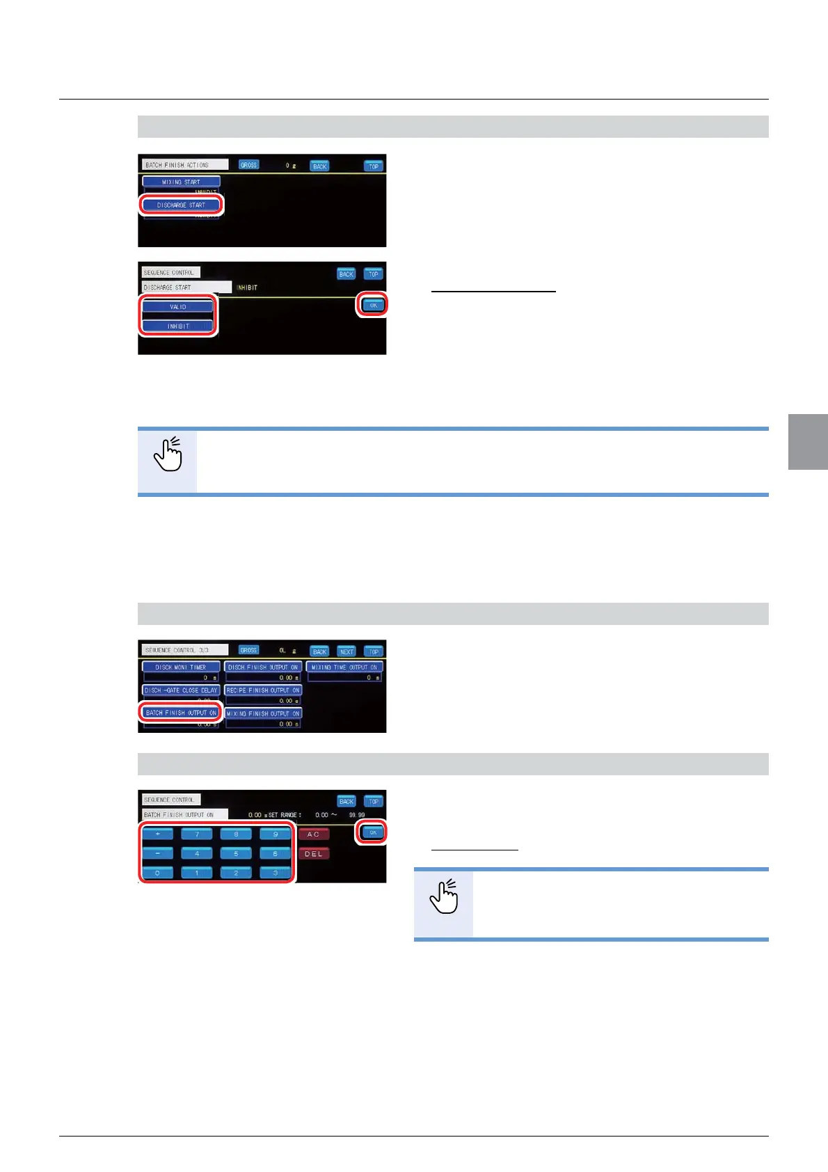 1. Tap [BATCH FINISH OUTPUT ON] on