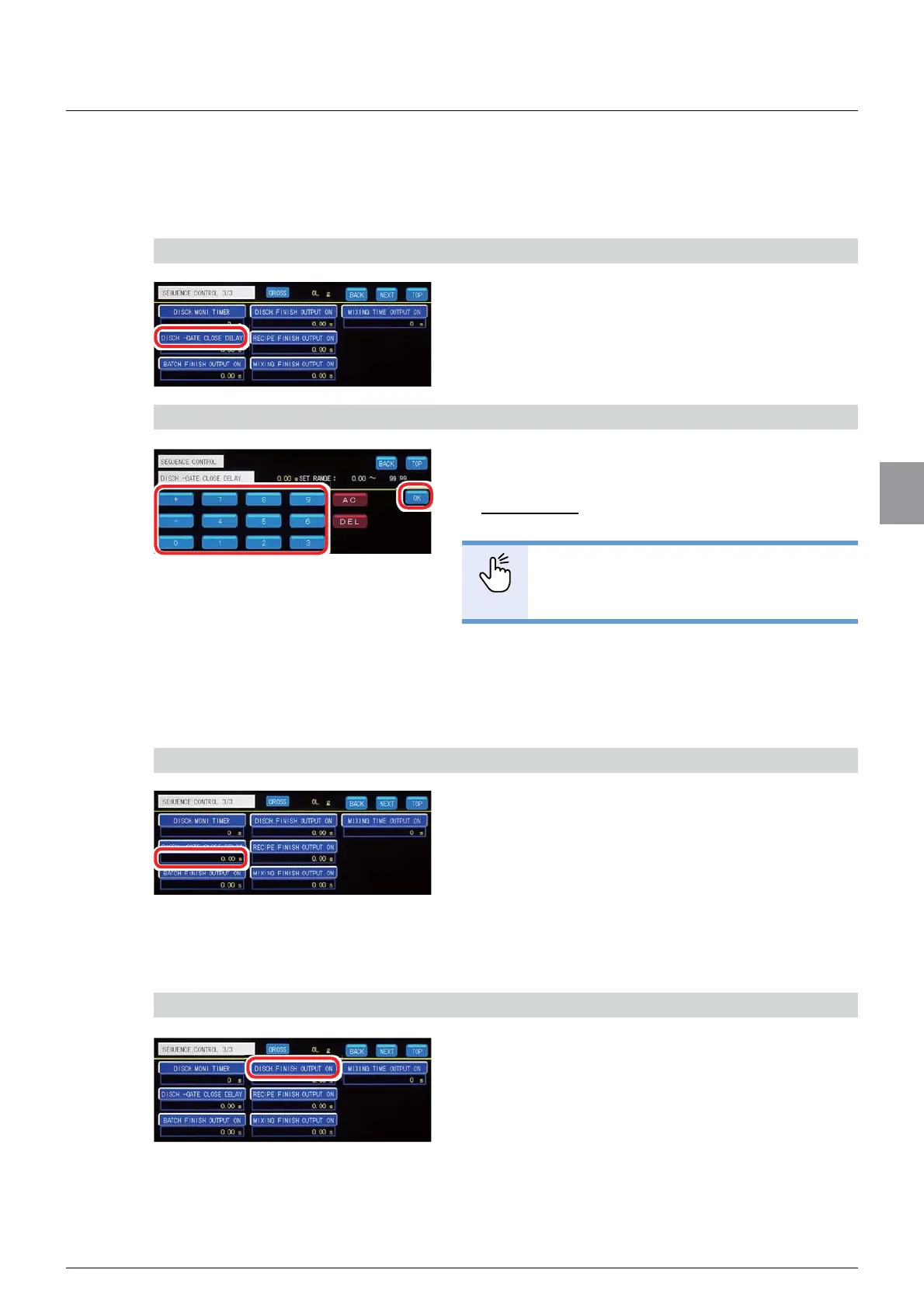 1. Tap [DCHG-GATE CLOSE DELAY] on