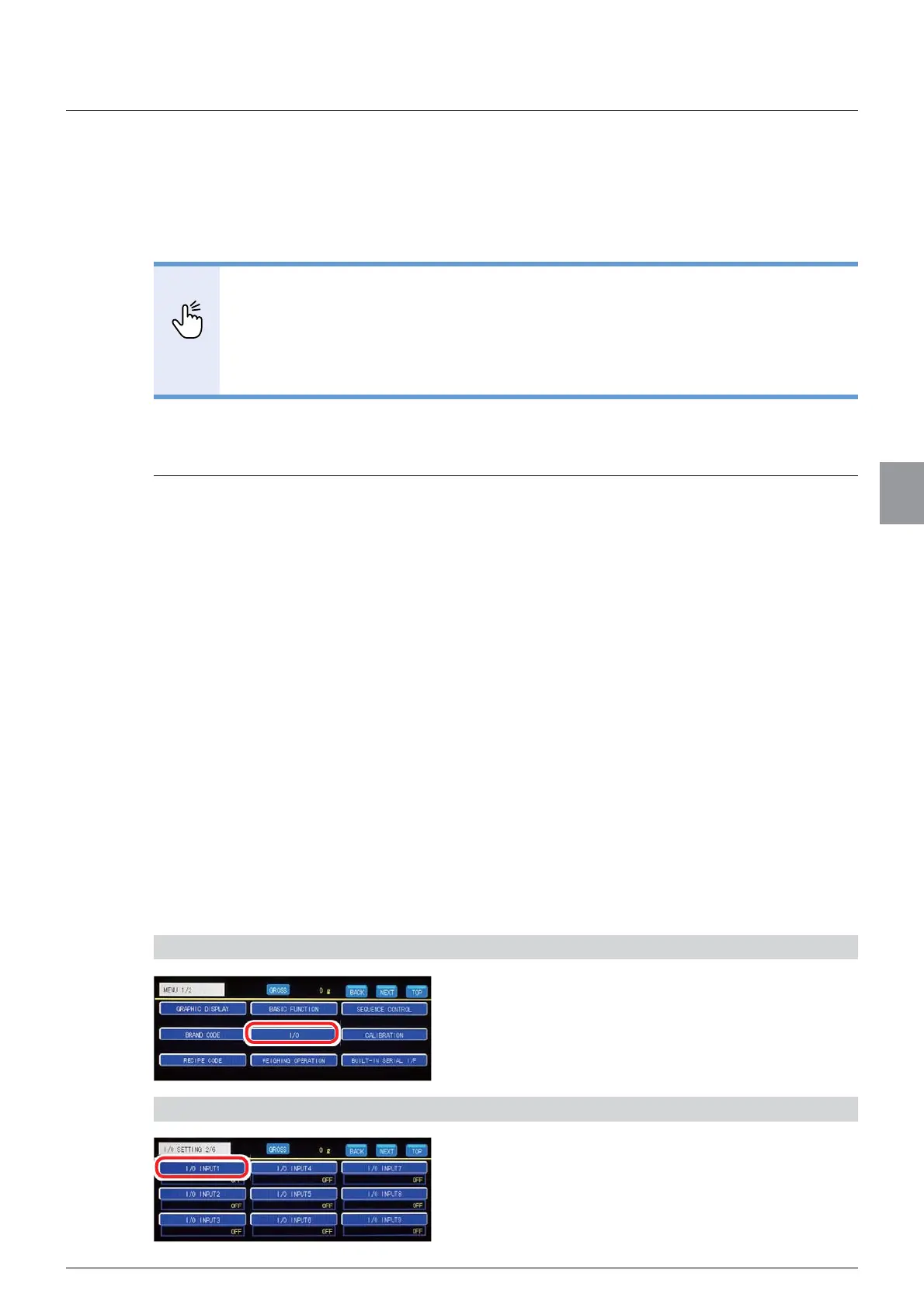 1. Tap [I/O INPUT1] on [I/O SETTING 2/6].