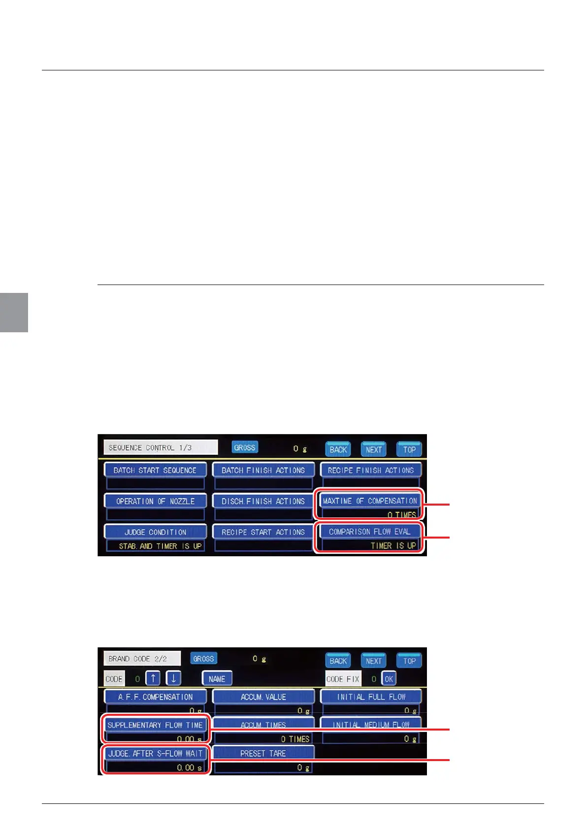 Set [MAXTIME OF COMPENSATION] and [COMPARISON FLOW EVAL] on Sequence control