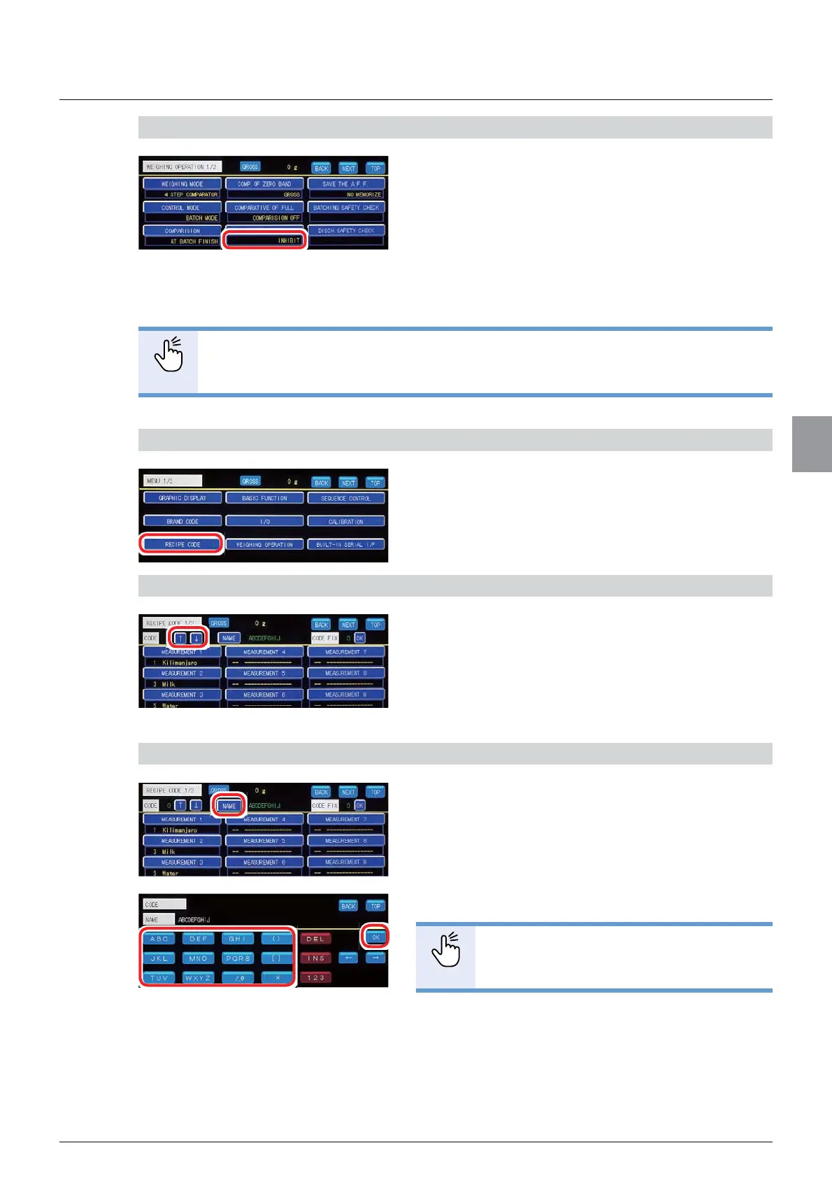 1. Tap [RECIPE CODE] on [MENU 1/2].