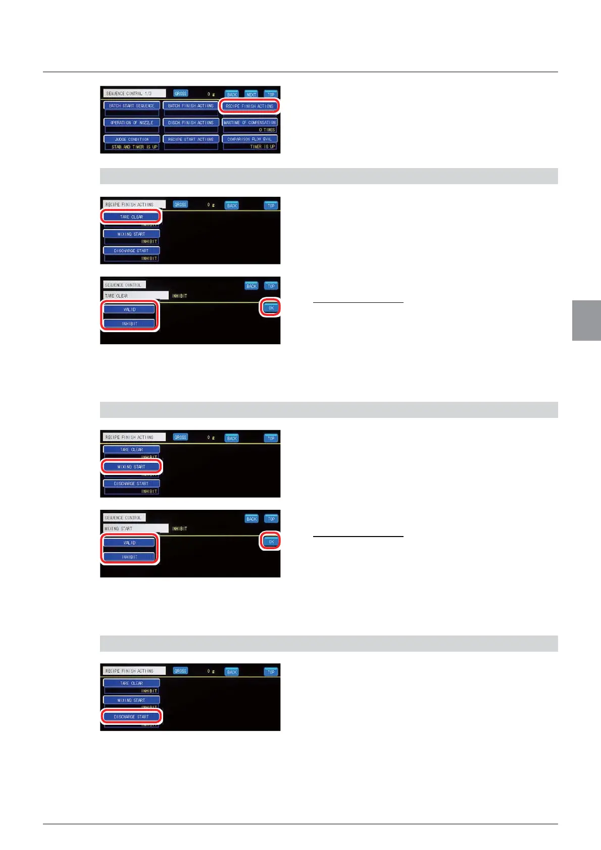 2) Set the operation of [TARE CLEAR] on completion of recipe