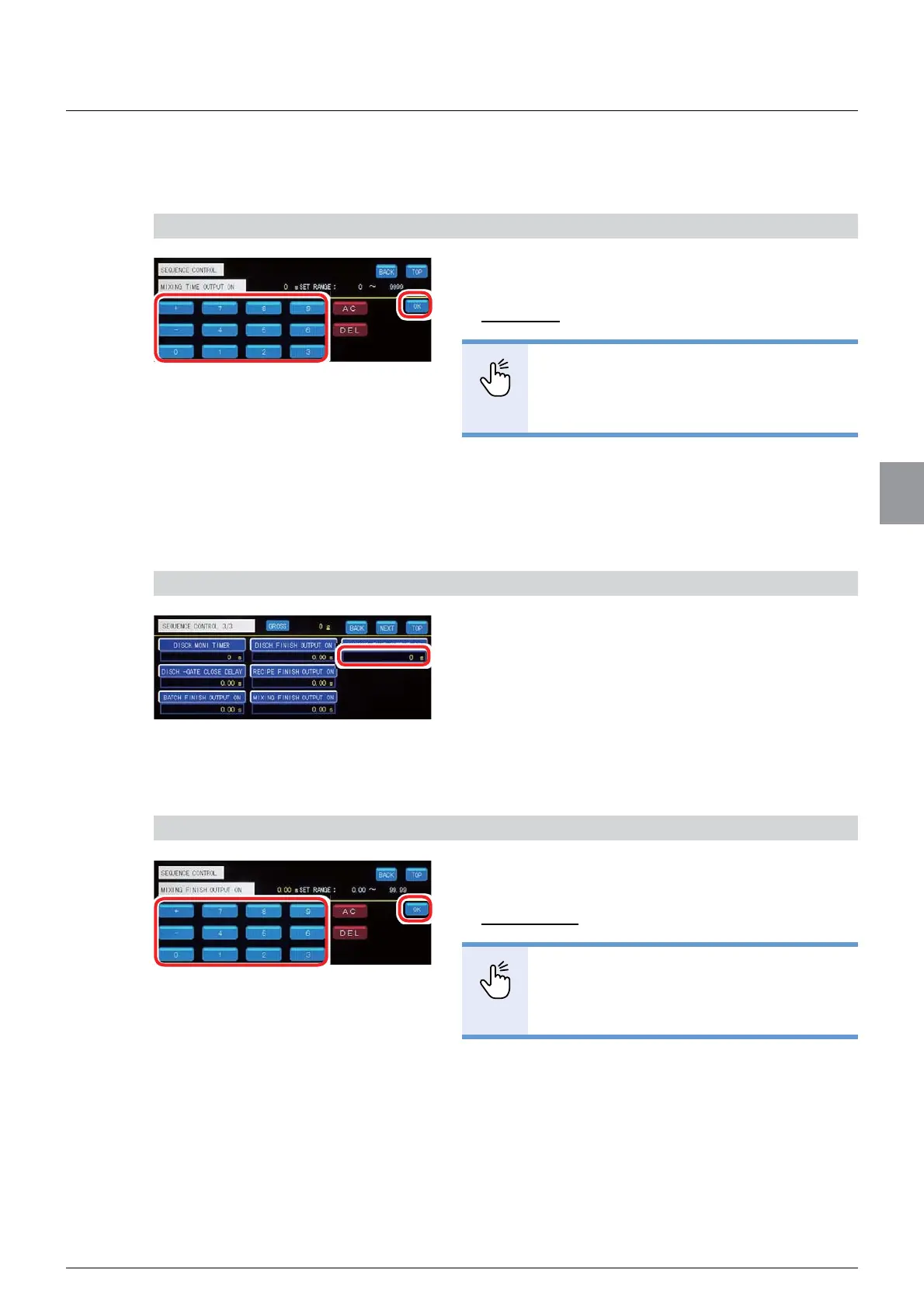 (1) [MIXING TIME OUTPUT ON] settings