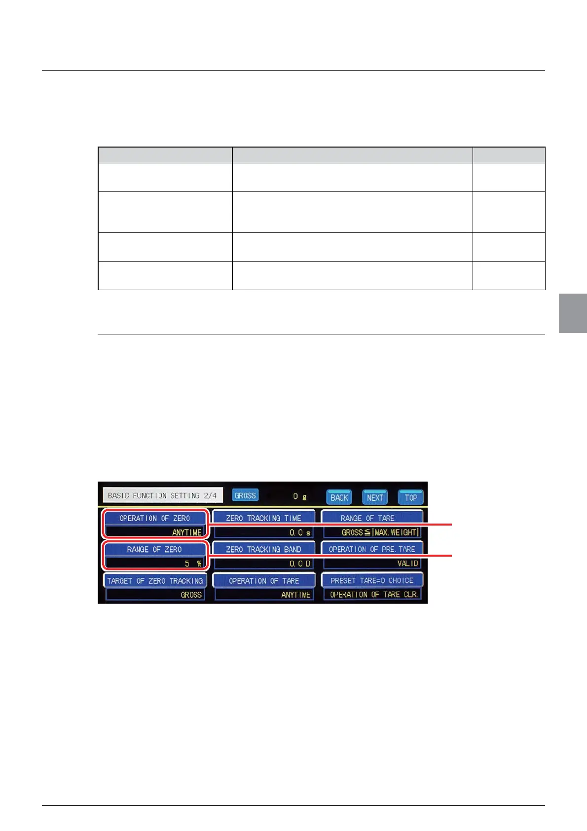 (1) Settings of condition of [OPERATION OF ZERO]
