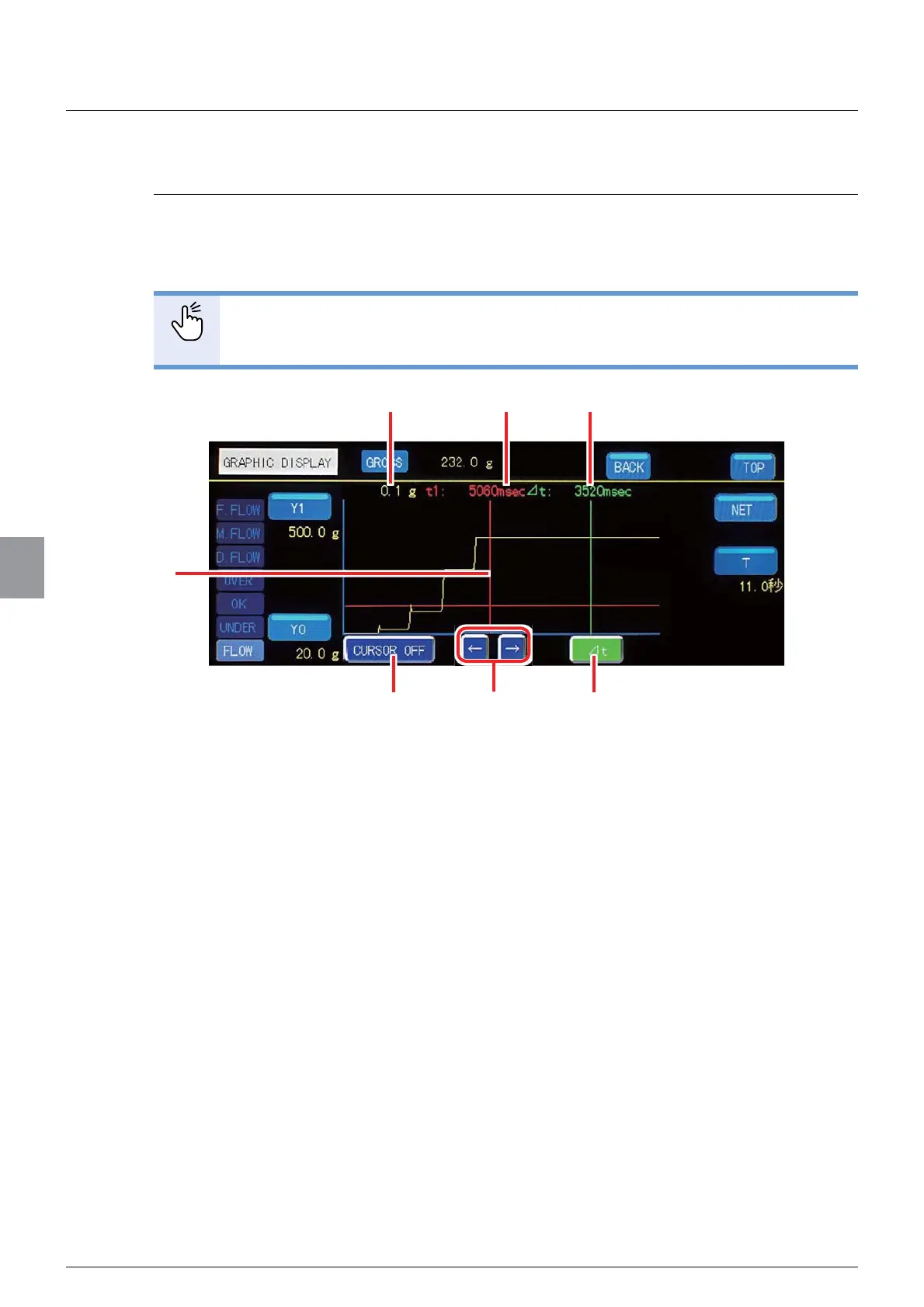 - For non-cursor related items, refer to “6.1.1. Checking the transition of weighing