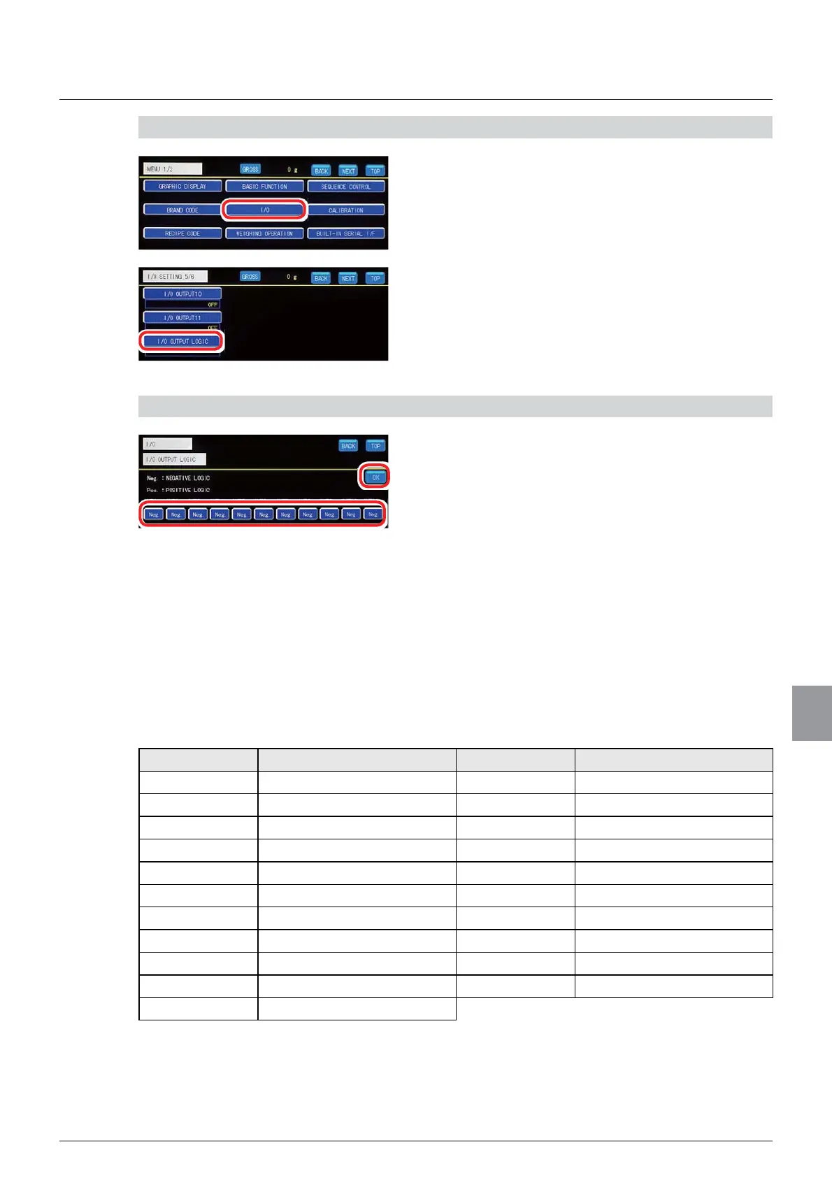 2. Tap [I/O OUTPUT LOGIC] on [I/O SETTING