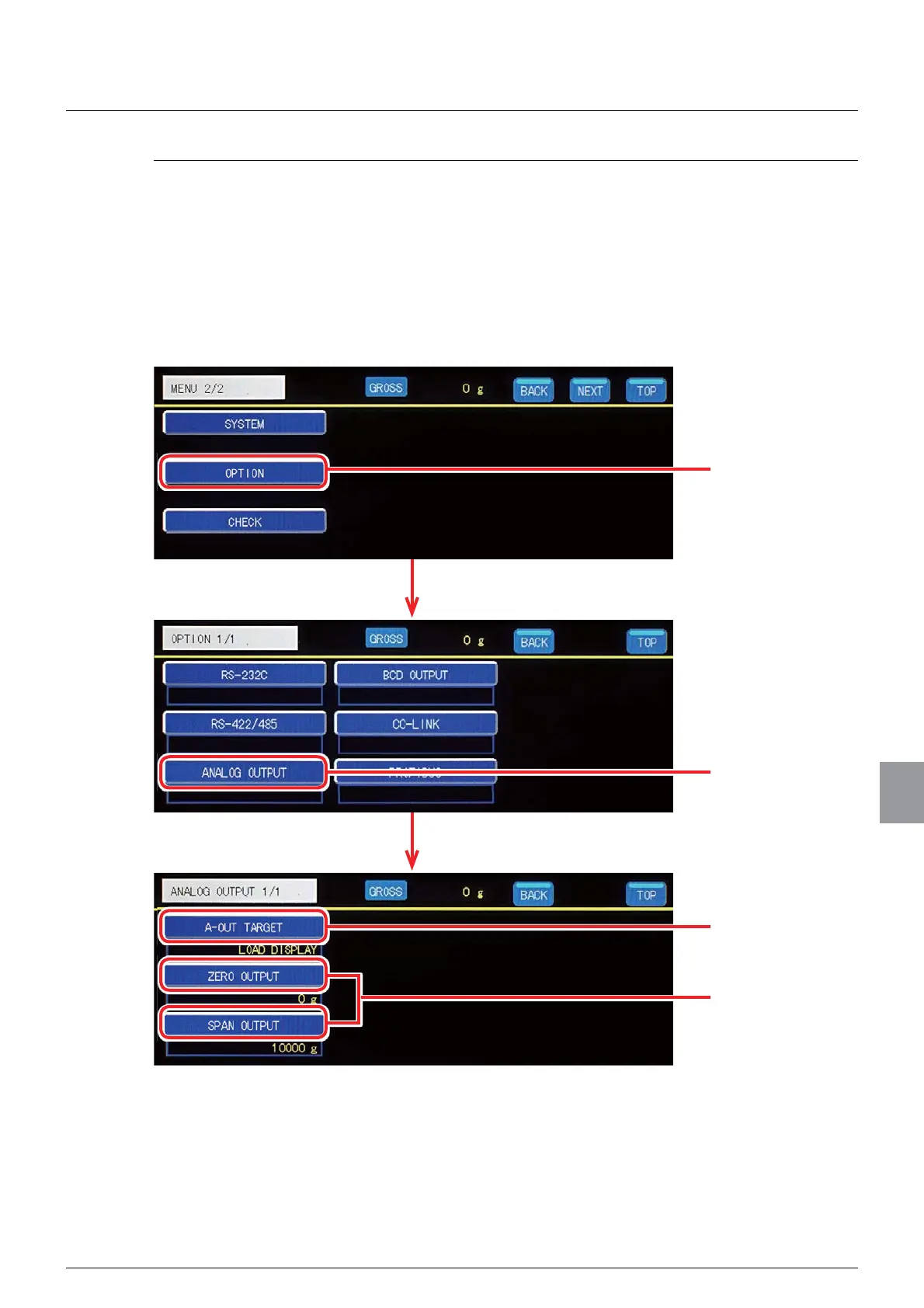 output setting screen, tap [OPTION] on [MENU 2/2], and then tap [ANALOG OUTPUT] on