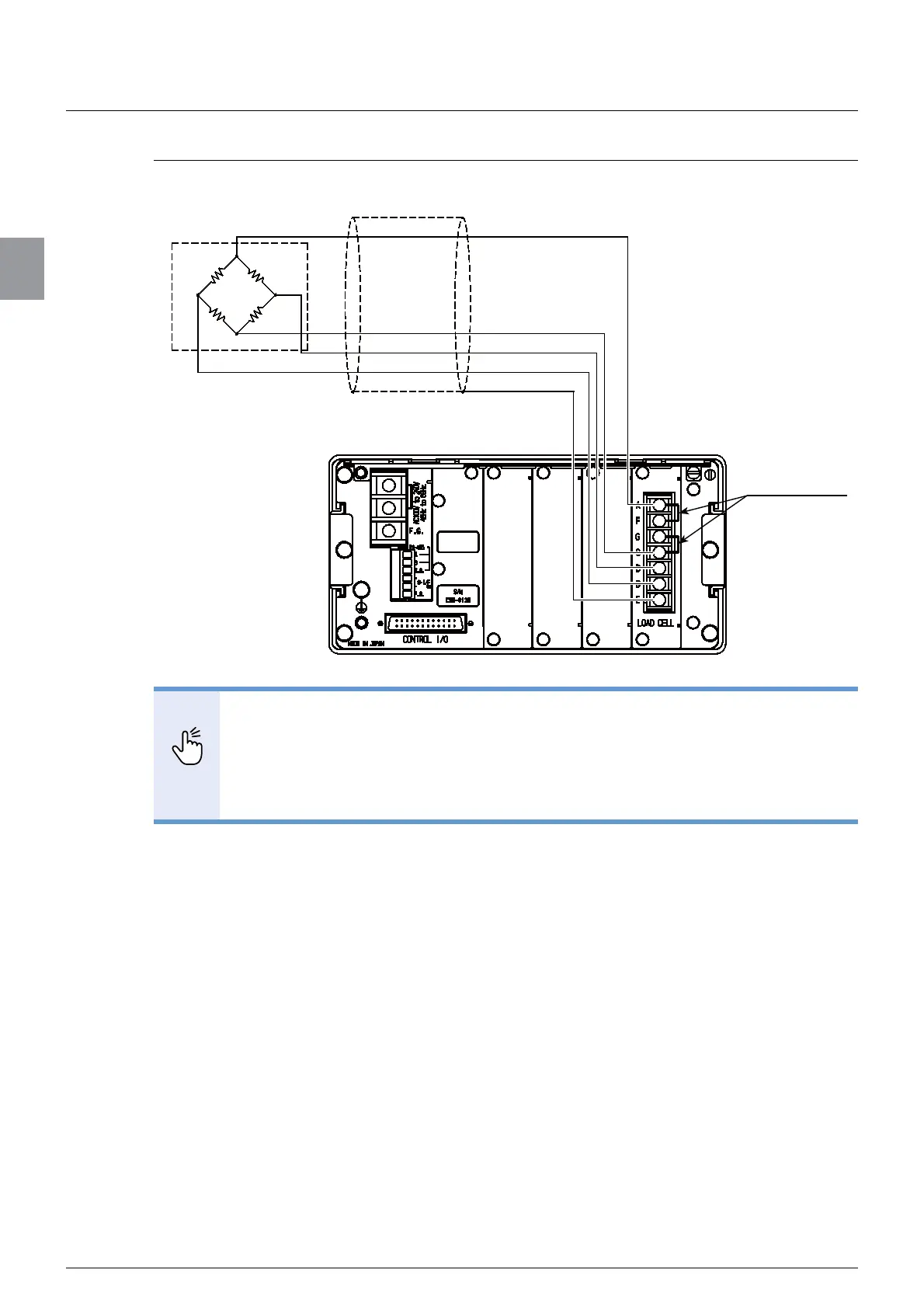 - Short out A-F and C-G of the strain gage based transducer terminal board using
