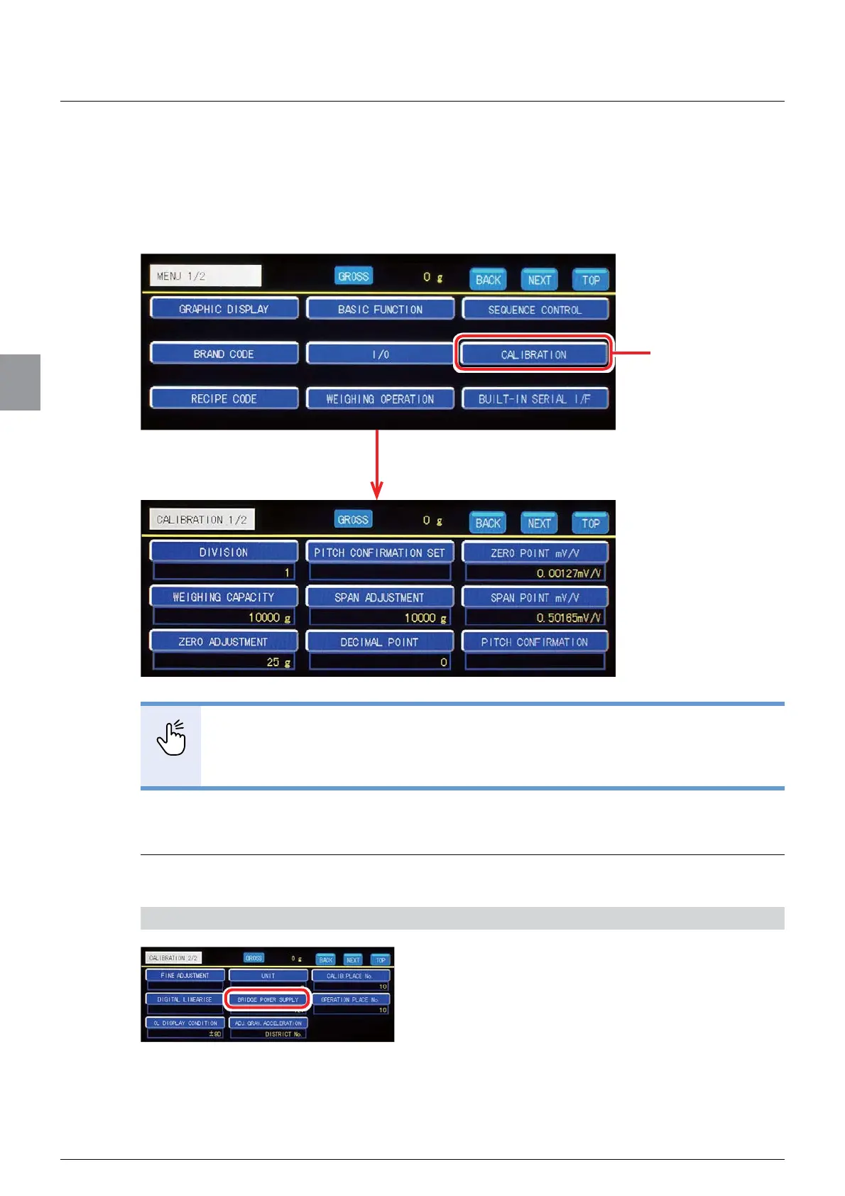 - Calibration screen consists of two pages. Refer to “3.4. How to switch screens” for