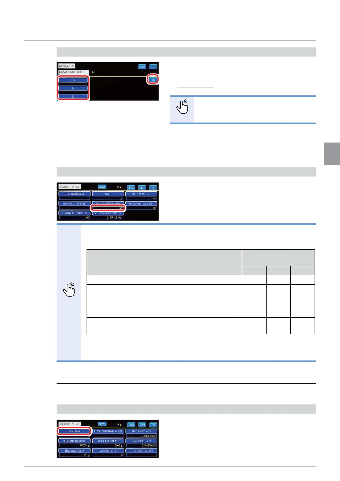 1. Tap [DIVISION] on [CALIBRATION 1/2].