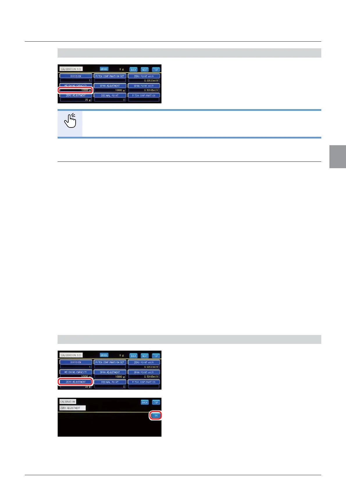 1. Tap [ZERO ADJUSTMENT] on [CALIBRATION 1/2].