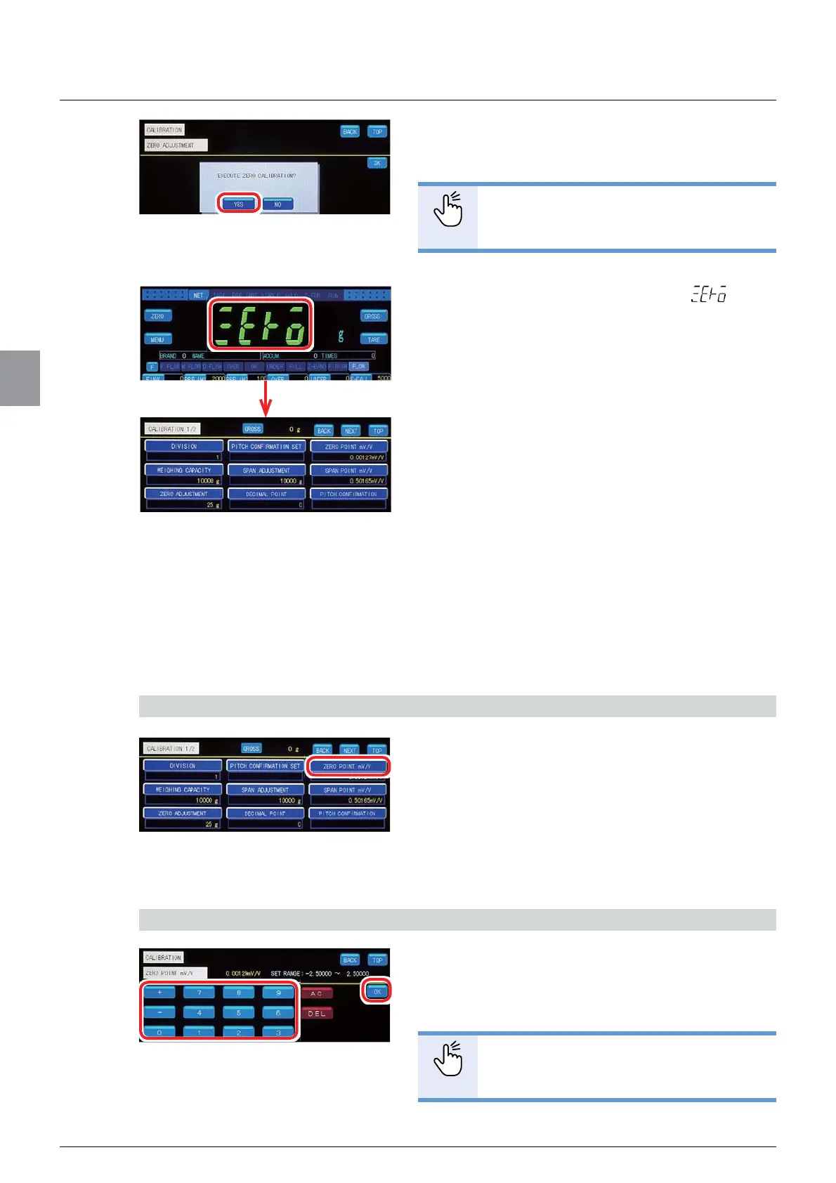 1. Tap [ZERO POINT mV/V] on [CALIBRATION