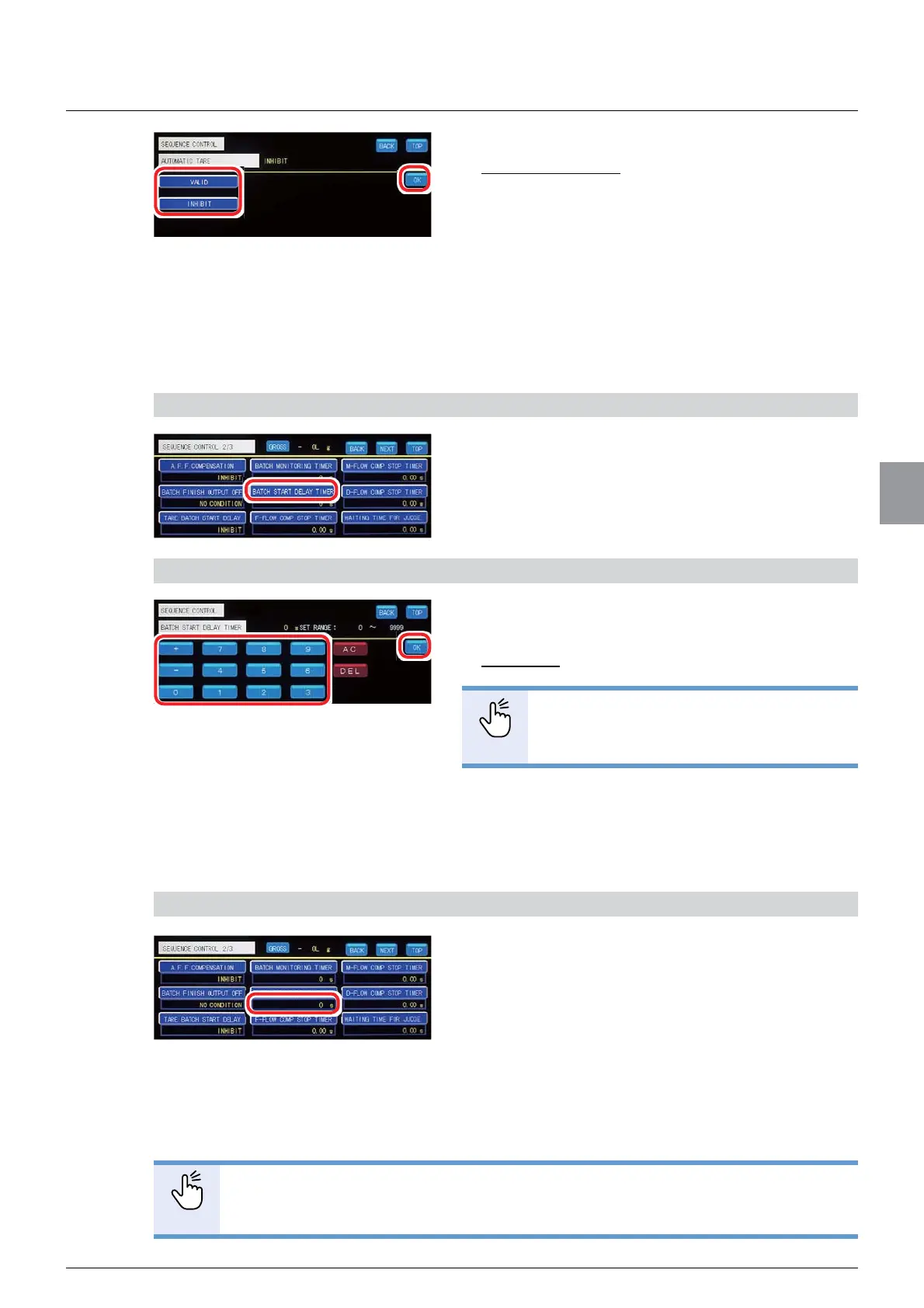 (3) Settings of tare operation after waiting time until batch start elapses