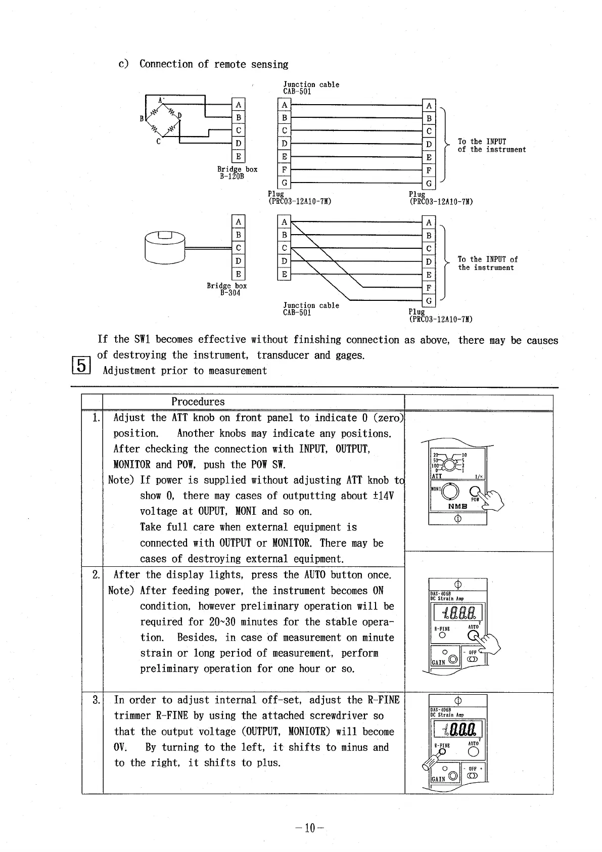 Minebea DAS-406B - Connection of Remote Sensing; Adjustment Prior to Measurement