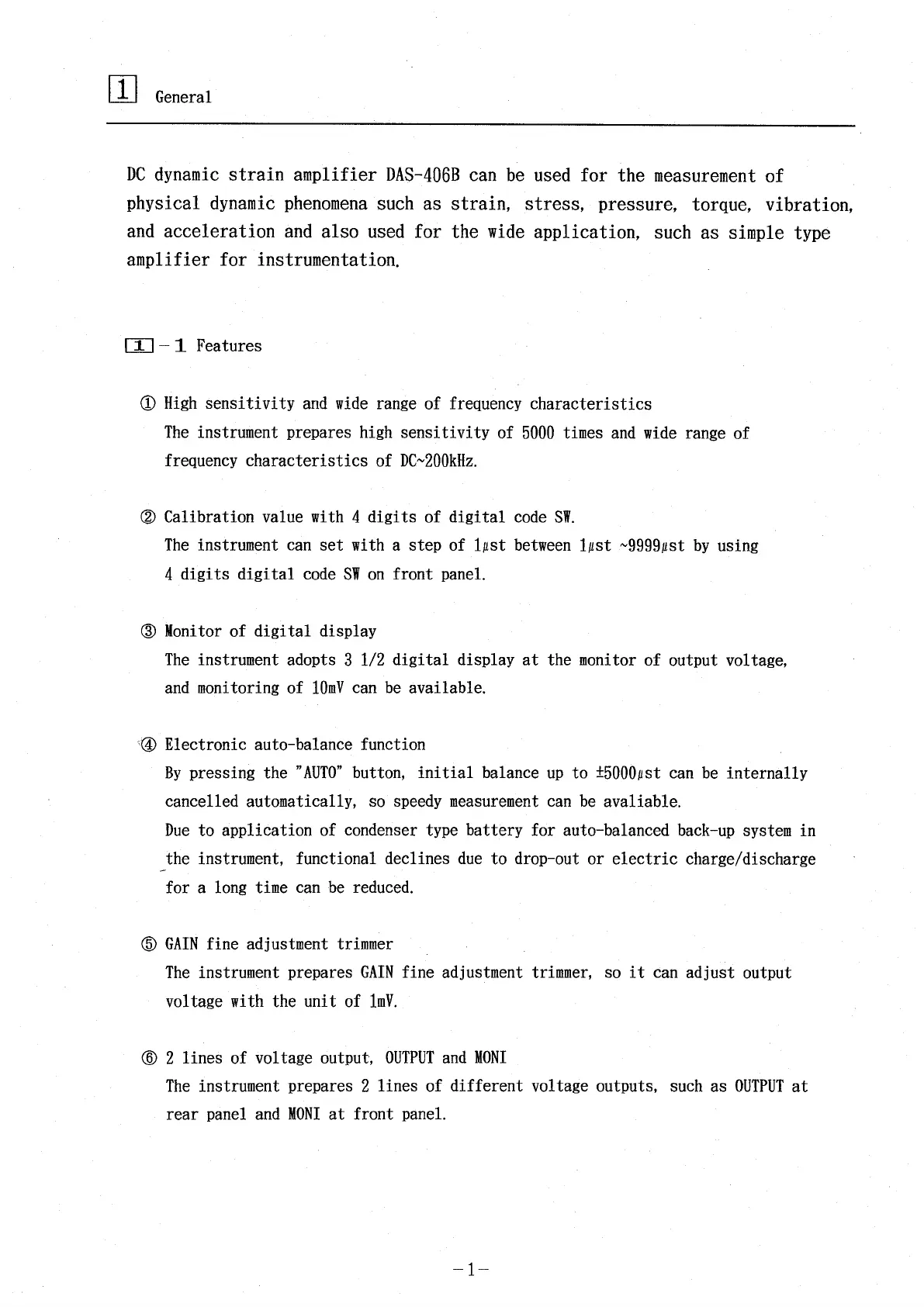 Minebea DAS-406B - General; Features