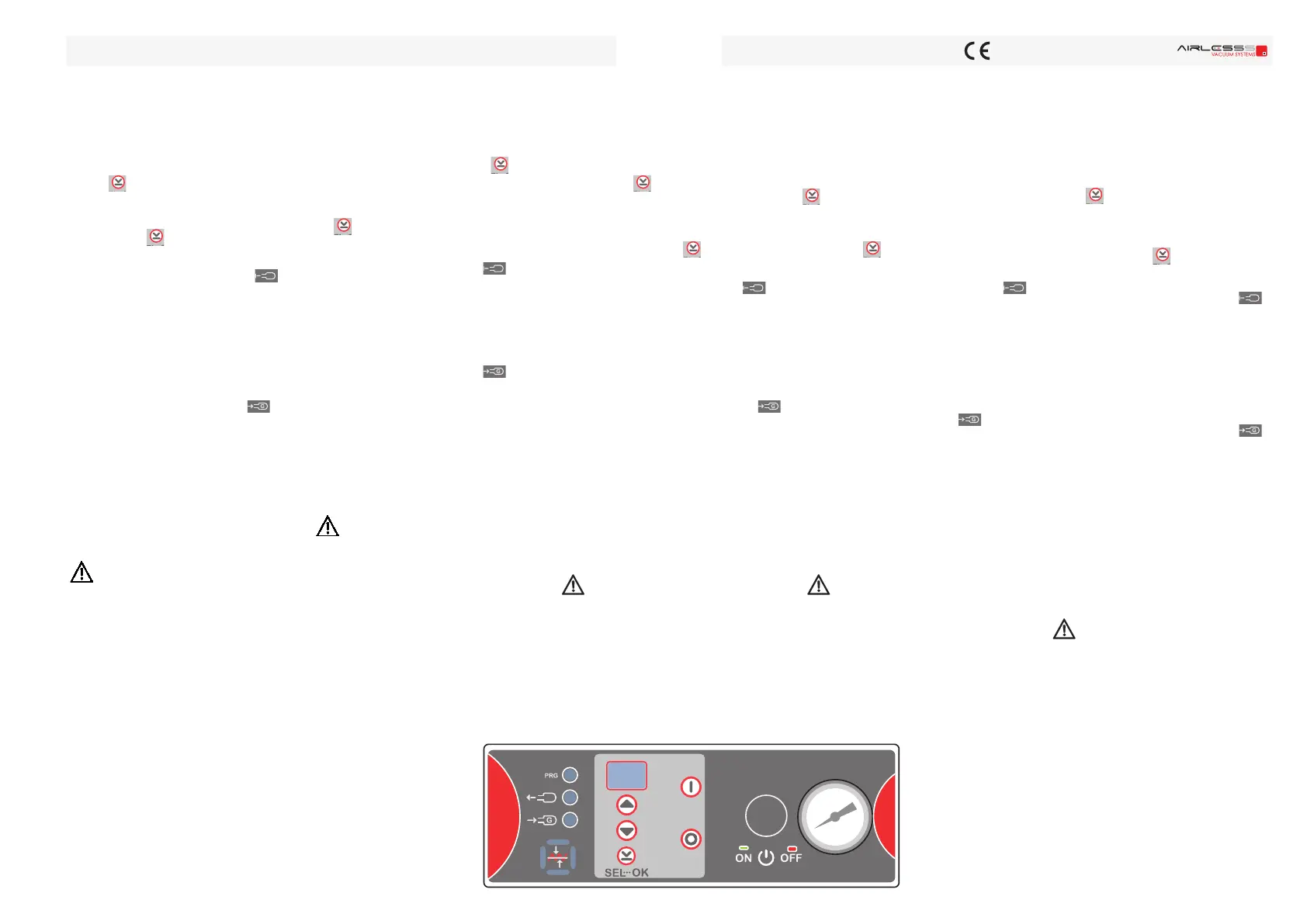 set the vacuum time using keys (+ and -).
