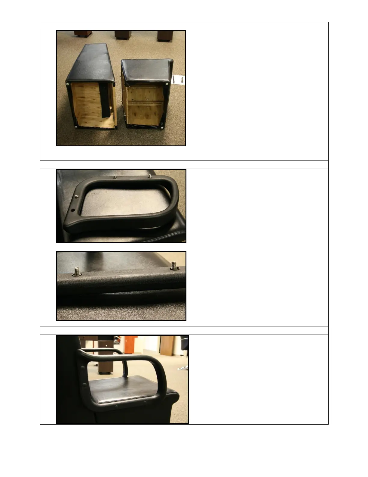Insert 3 bolts into arm of chair.