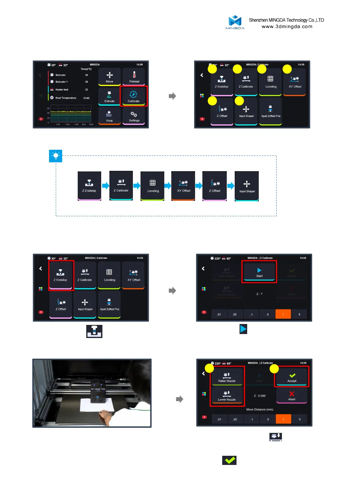 Z Endstop → Z Calibrate → Leveling → XY Offset → Z Offset → Input Shaper