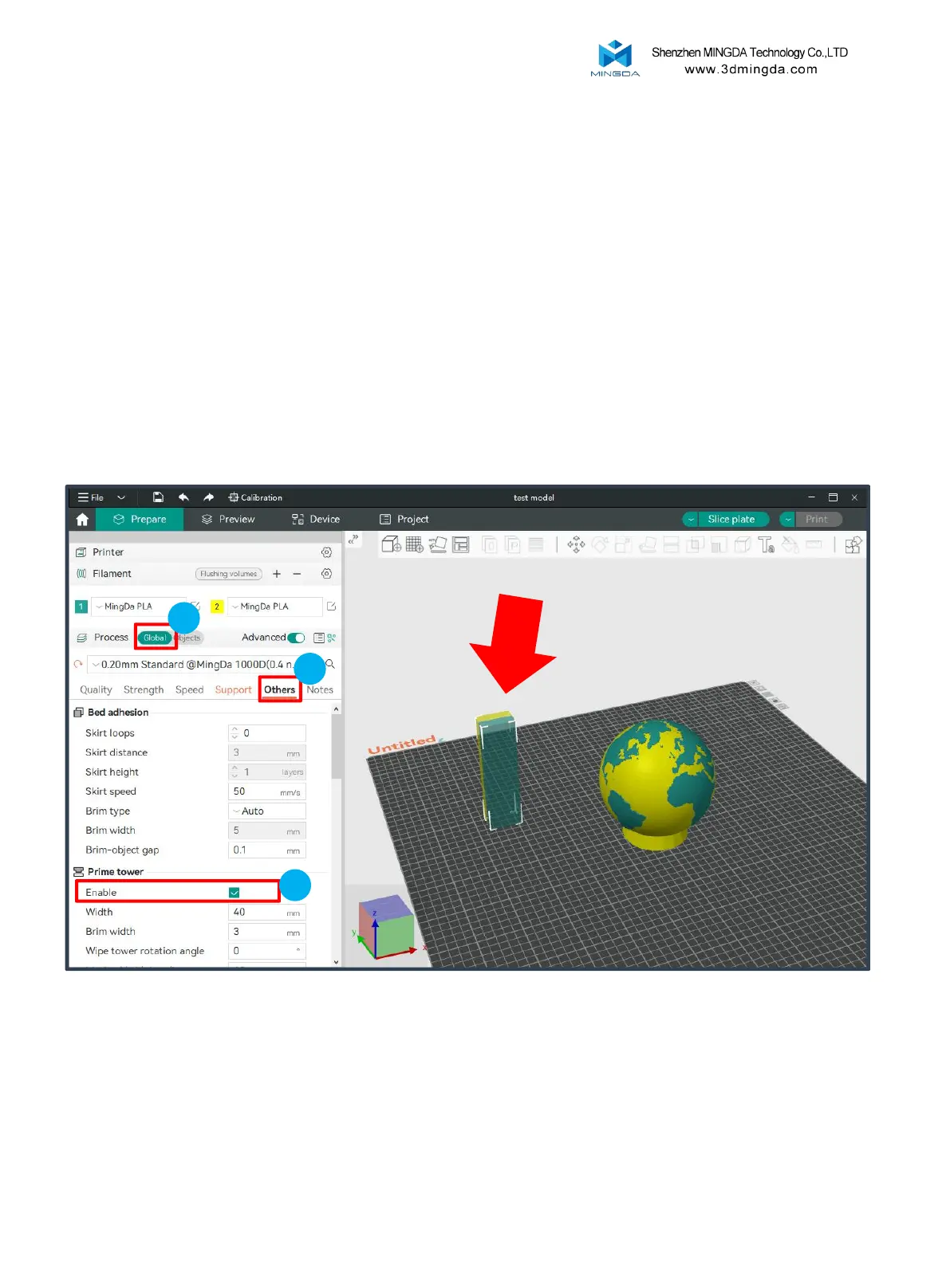 cause defects such as wire drawing and material leakage. Prime tower can solve this problem,