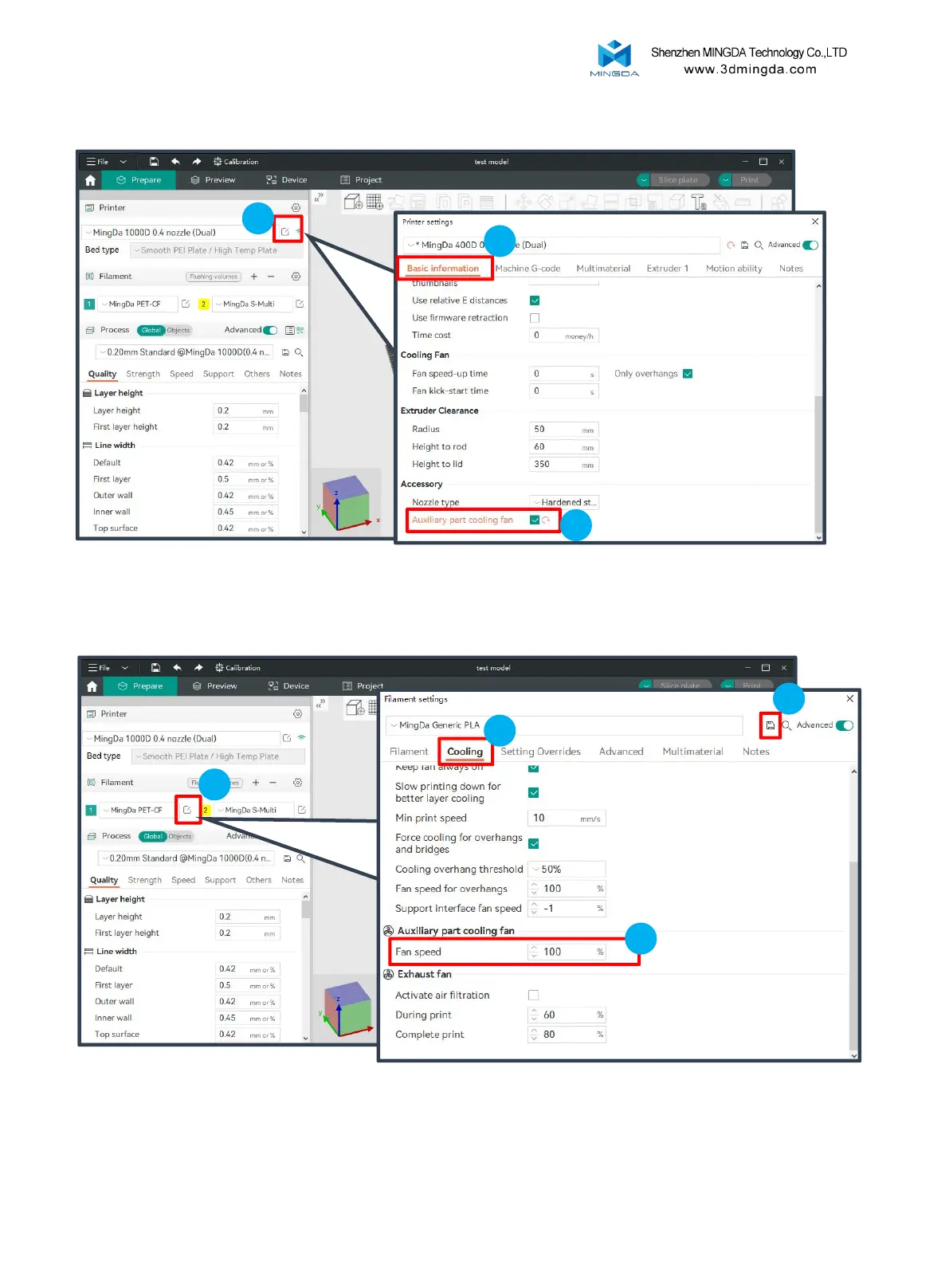 Due to the different feature of filament, if you do not need an auxiliary fan or need to adjust the fan speed, please go to the