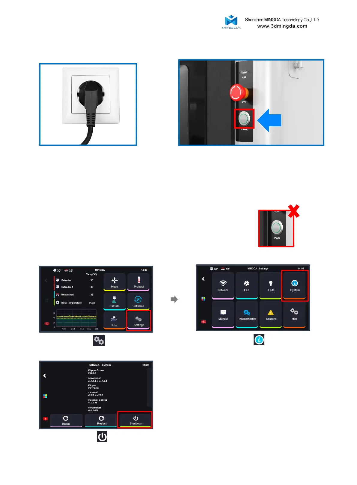 Mingda MD-1000D - Power on; Power off