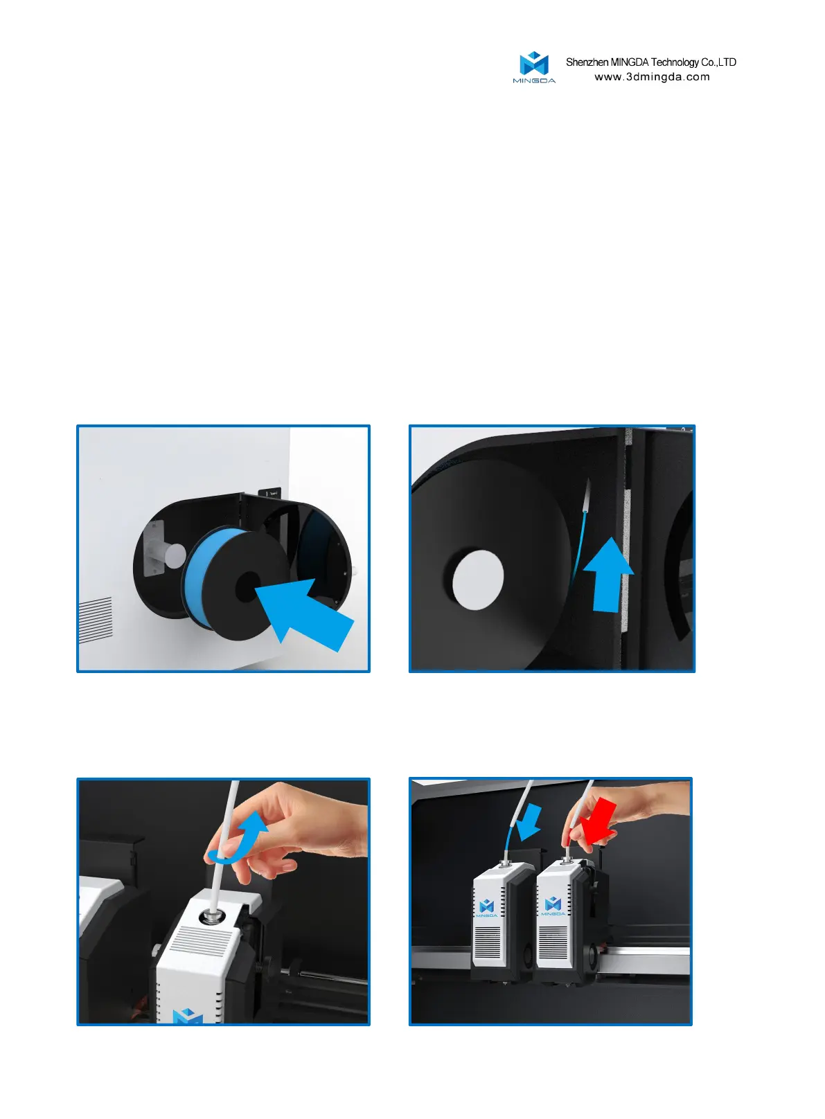 insert the Filament from the inlet port until the Filament are exposed to the printed head along the