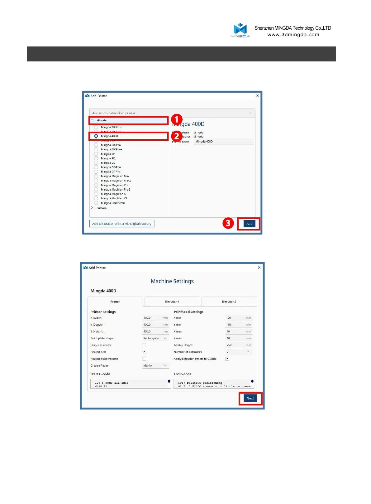 Select the printer model you want to use, such as MD-400D, and then click [Add].
