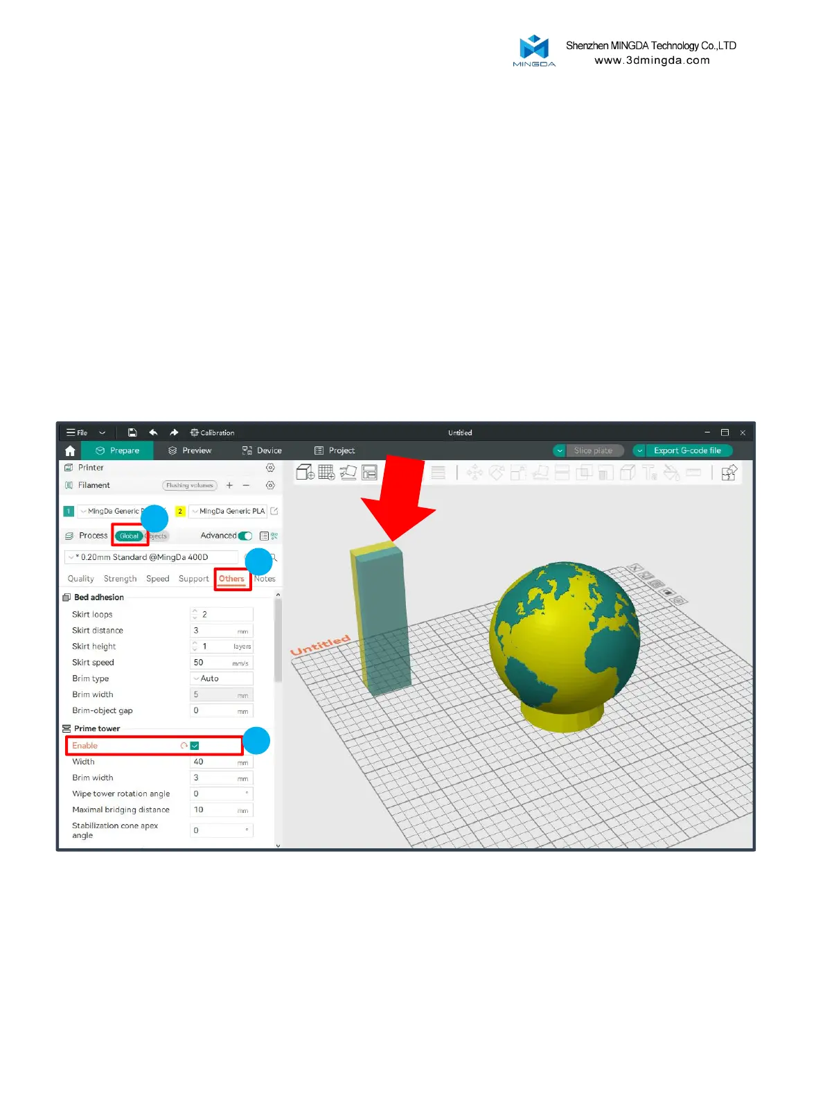 Note: The printing position of the Prime tower cannot coincide with the model