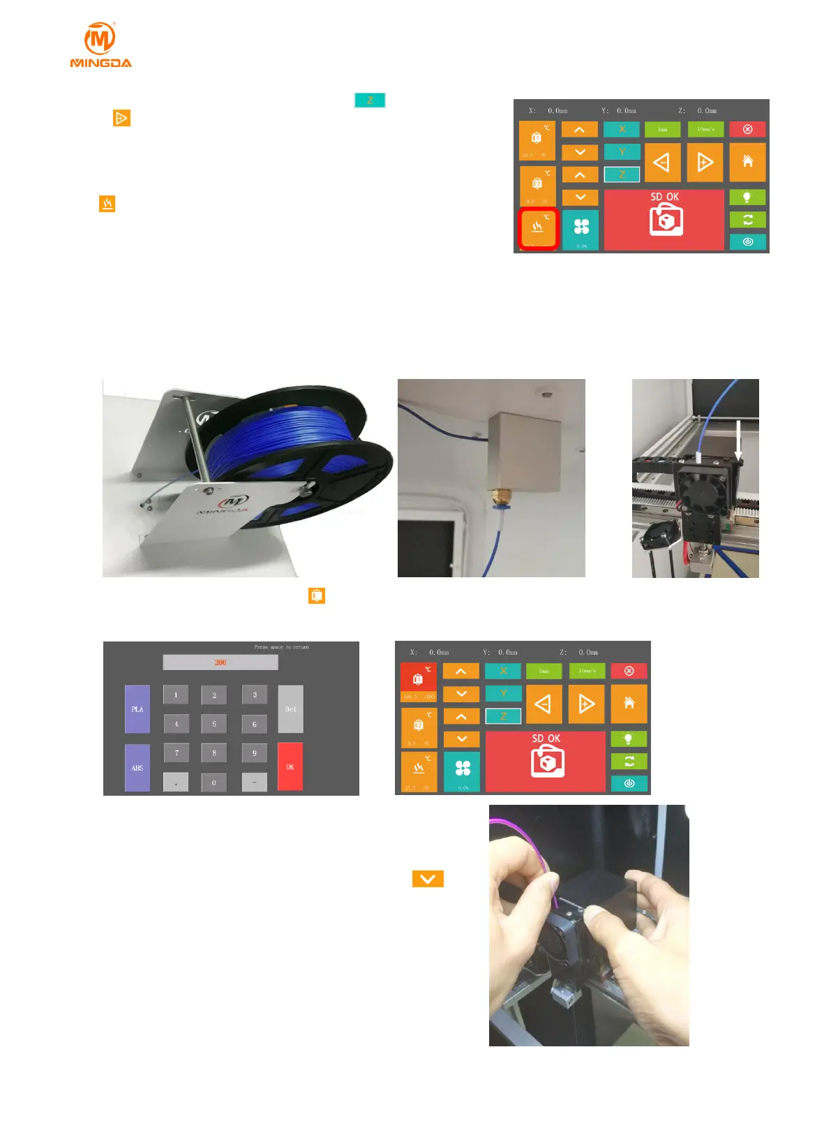 3.Click the printing head button , click "PLA", default input 200, that it turns red means beginning