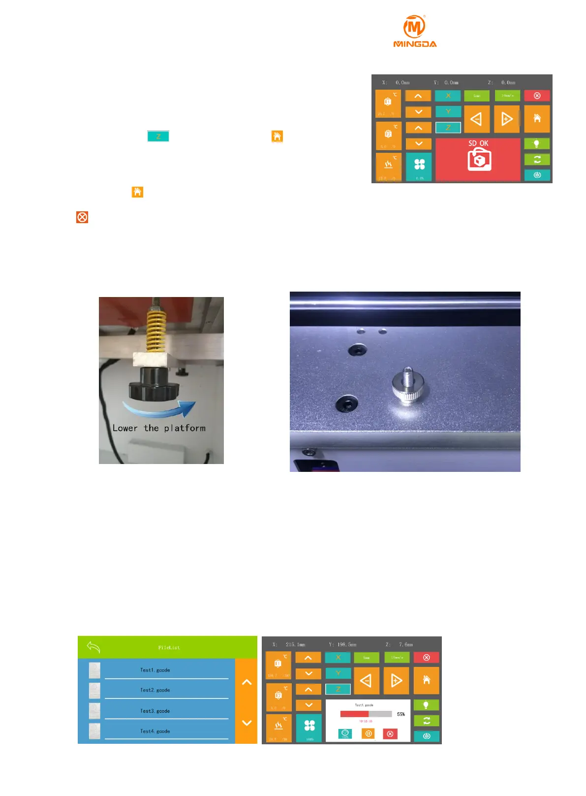 1. Choose "Z" axis , and click reset button to raise the hot bed