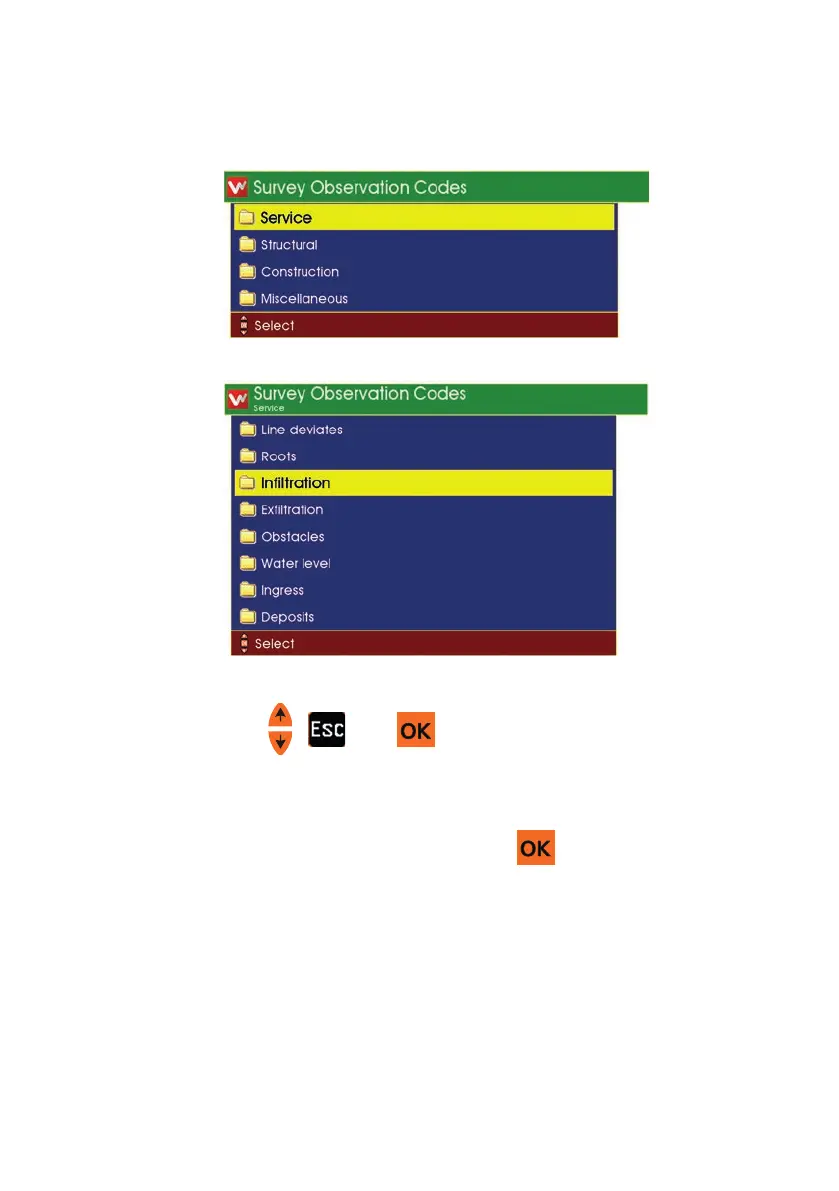 n Use the arrows , , and to browse the Defect Code categories