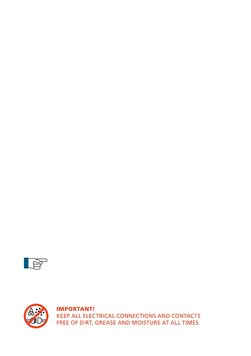 • Keep all electrical connections and contacts free of dirt, grease