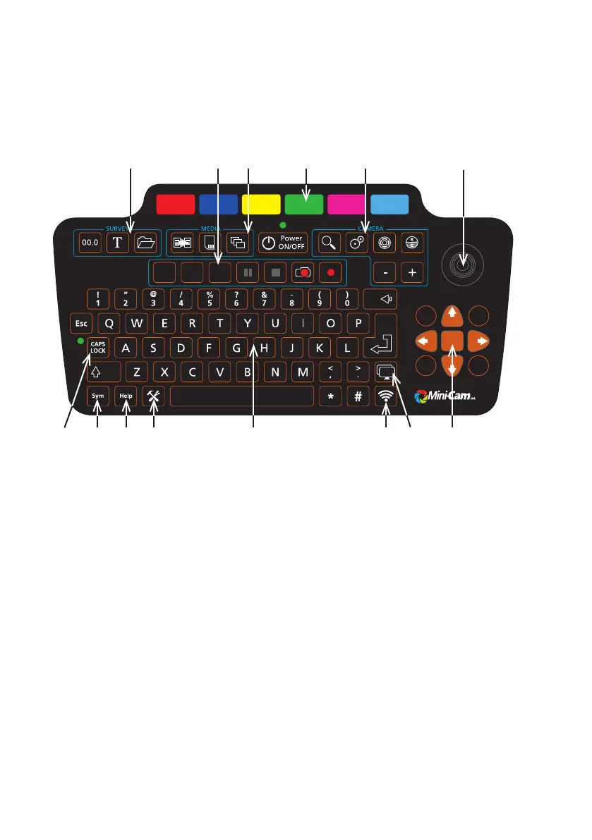 The keyboard is divided into clusters of keys and single keys as shown below.