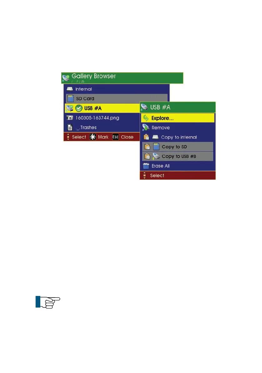 NOTE: If the selected file is a .jpg picture, then the first menu entry