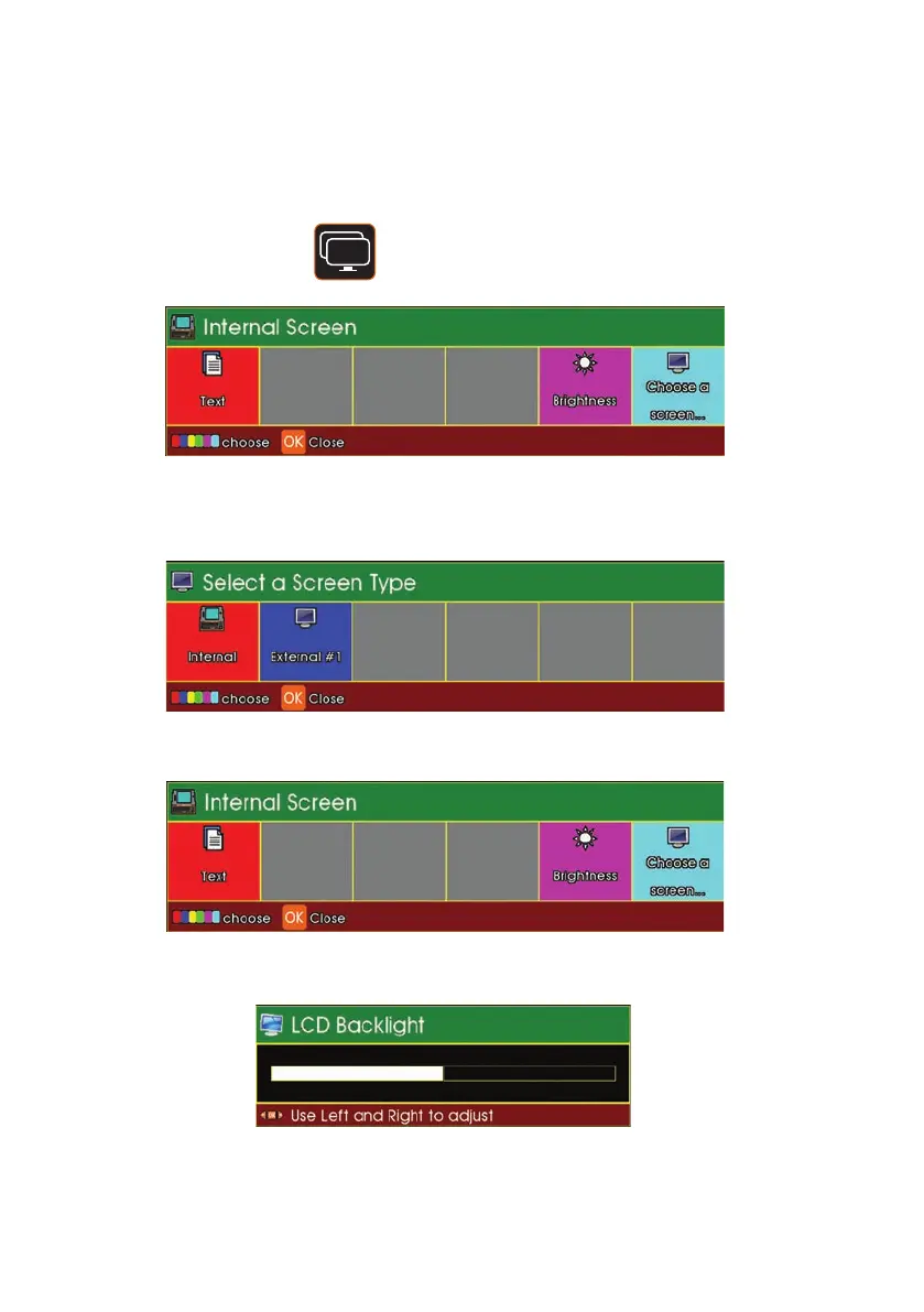 Press F6 (Cyan key) Choose a Screen to select the Internal