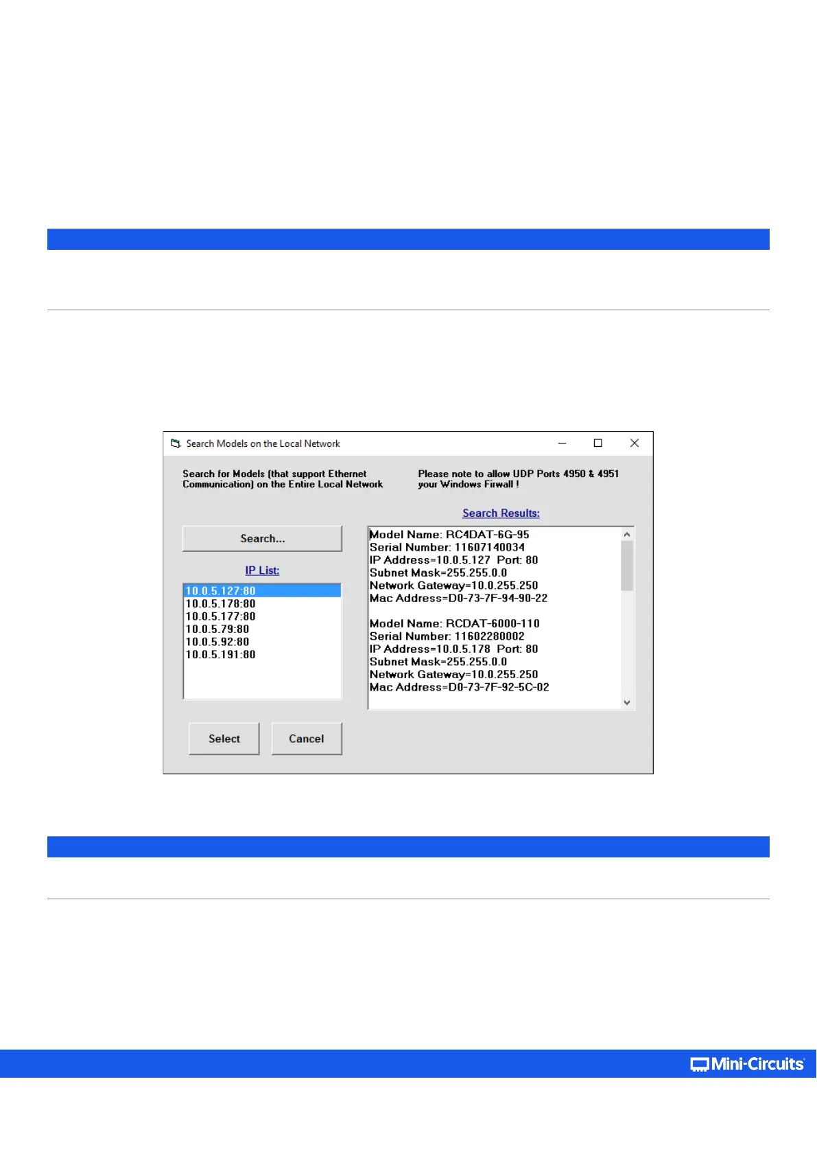 side of the screen, and full details of each unit on the right. Click the IP address you wish to use and press Select. The search