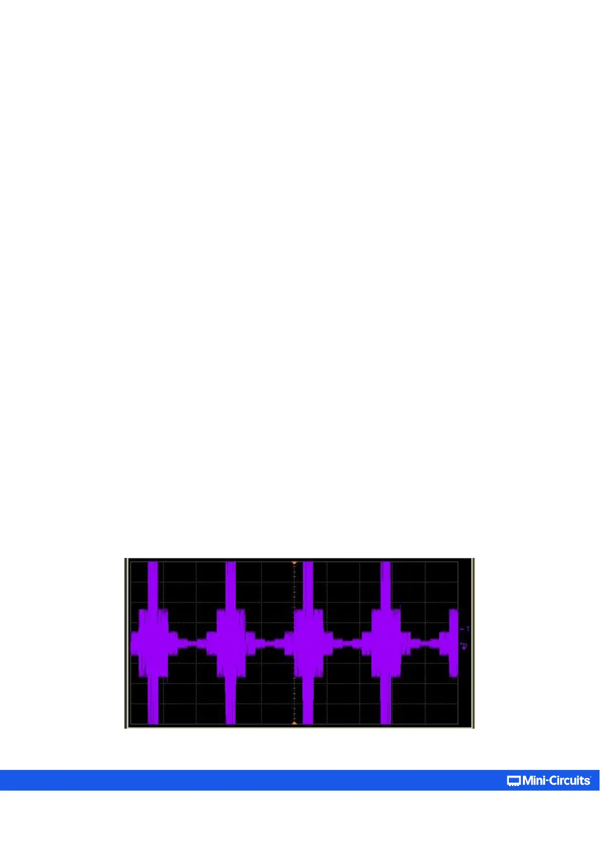 Figure 5.4.4: Plot of signal when sweeping attenuation 0 - 40dB in 10 dB steps (scale 2ms/div)