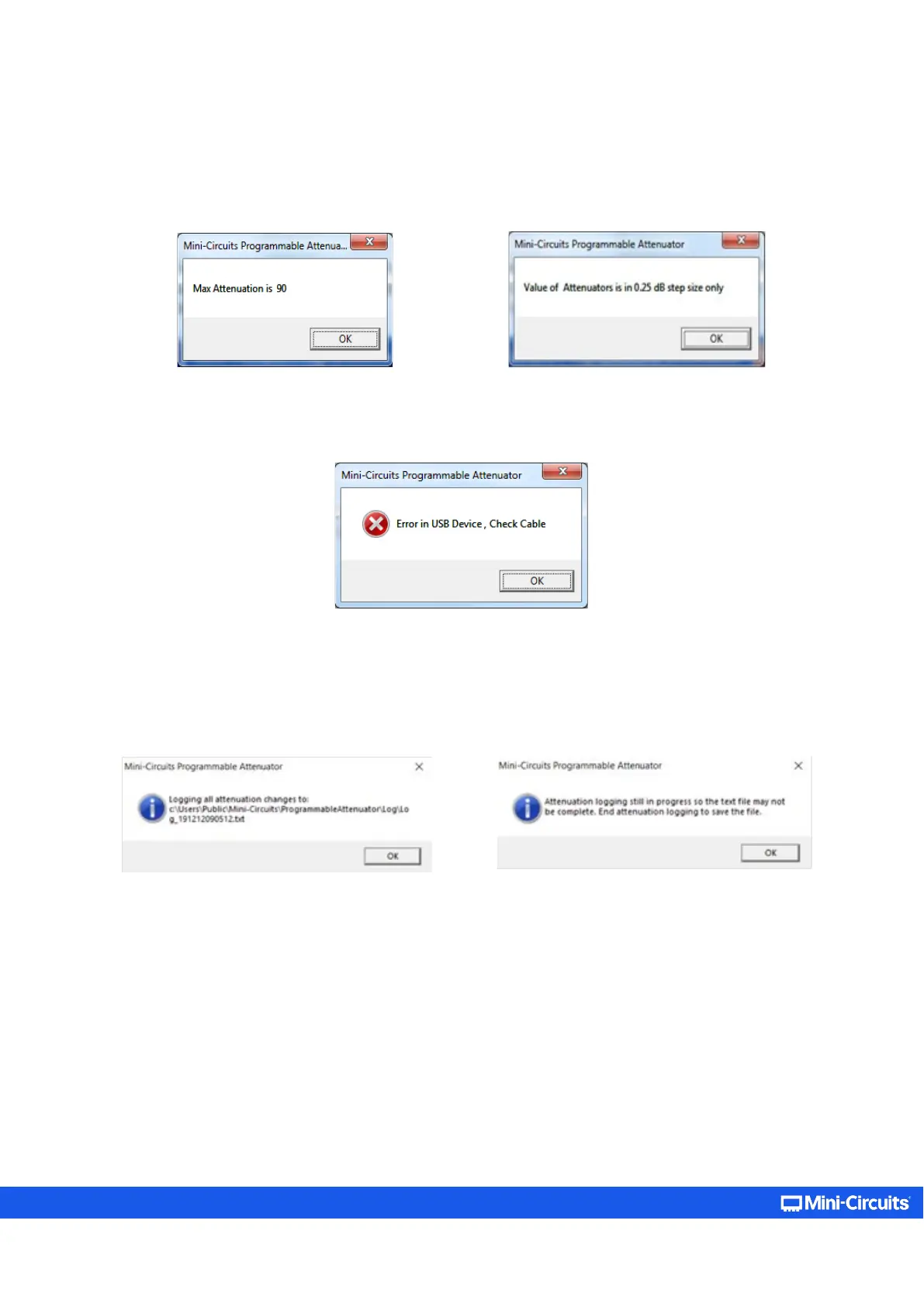 If the attenuator is disconnected during operation or experiences a problem with the power supply an alert will pop up. Click OK