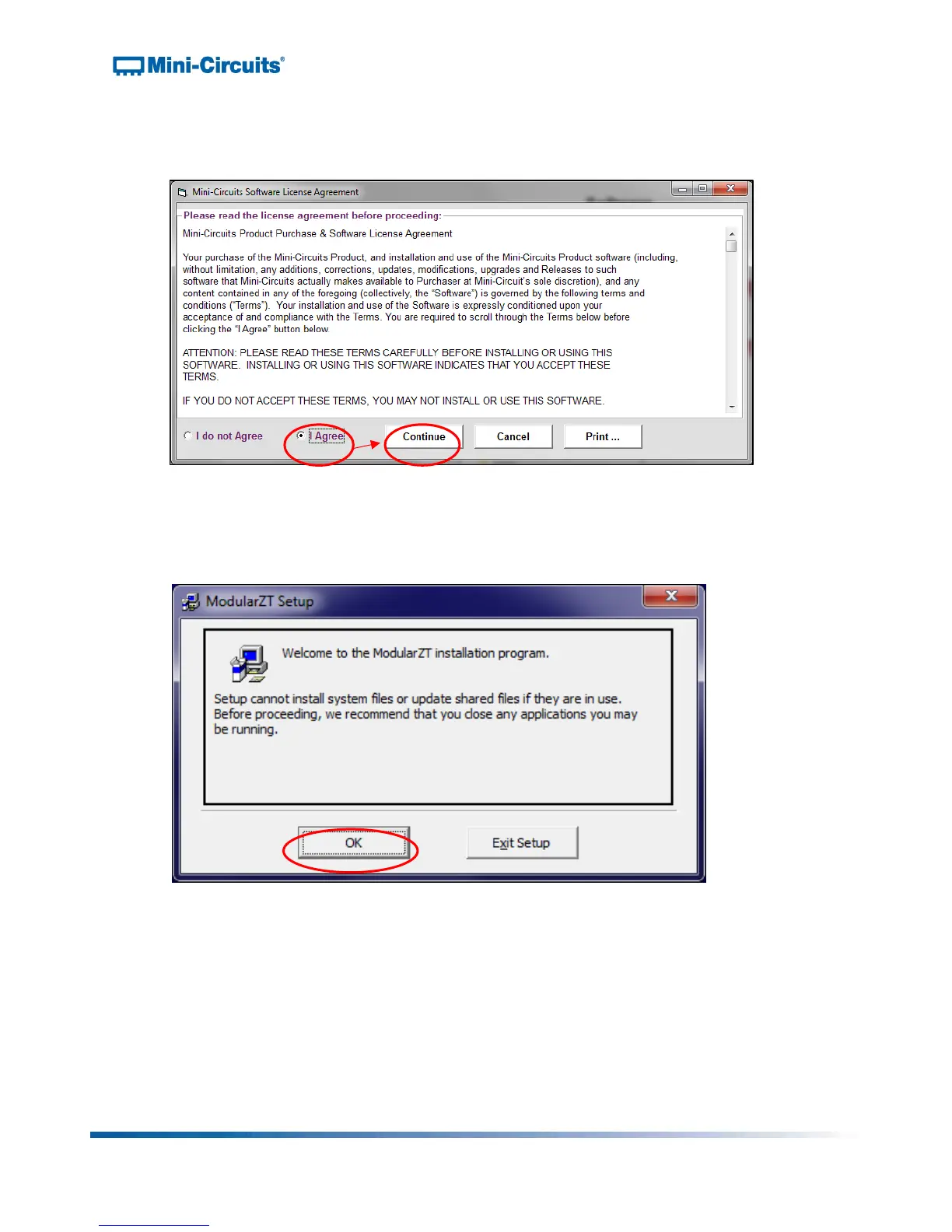 4) The software license agreement will appear. Review the agreement, select “I agree,”