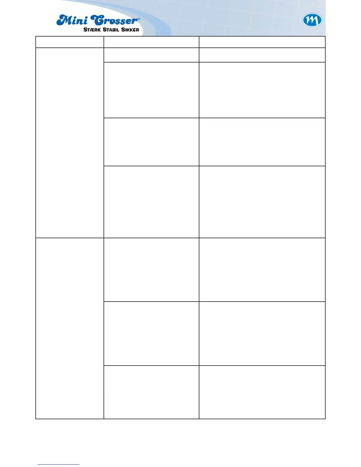 Område Komponent Kontrol & afhjælpning