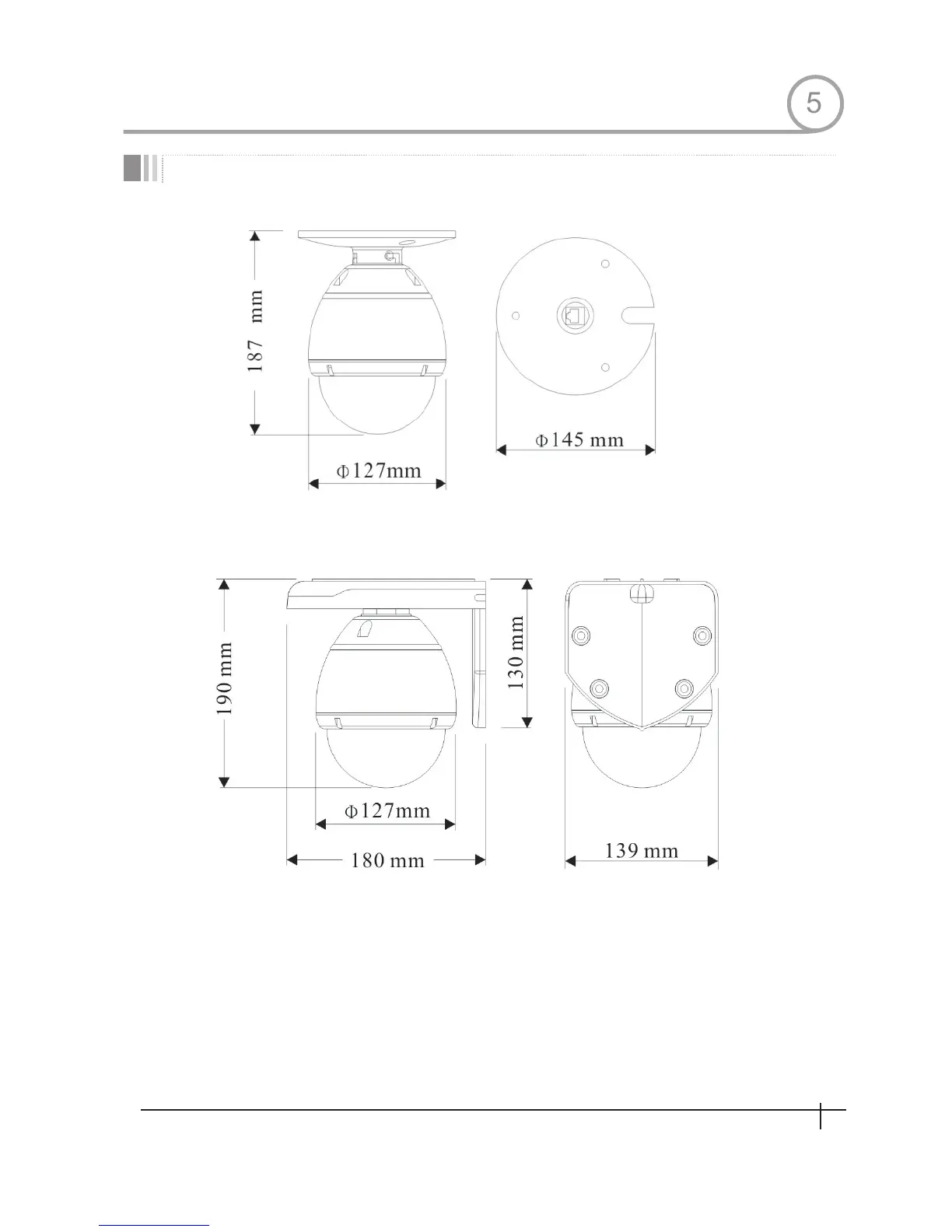 Mini Speed Dome Camera - Physical Dimensions; Camera Dimension Diagrams