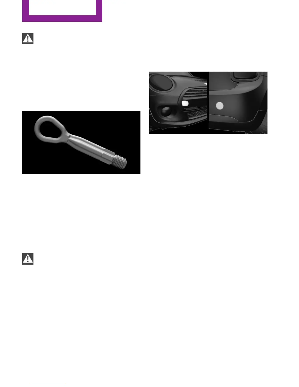 ▷ Use tow fitting located in the front only for