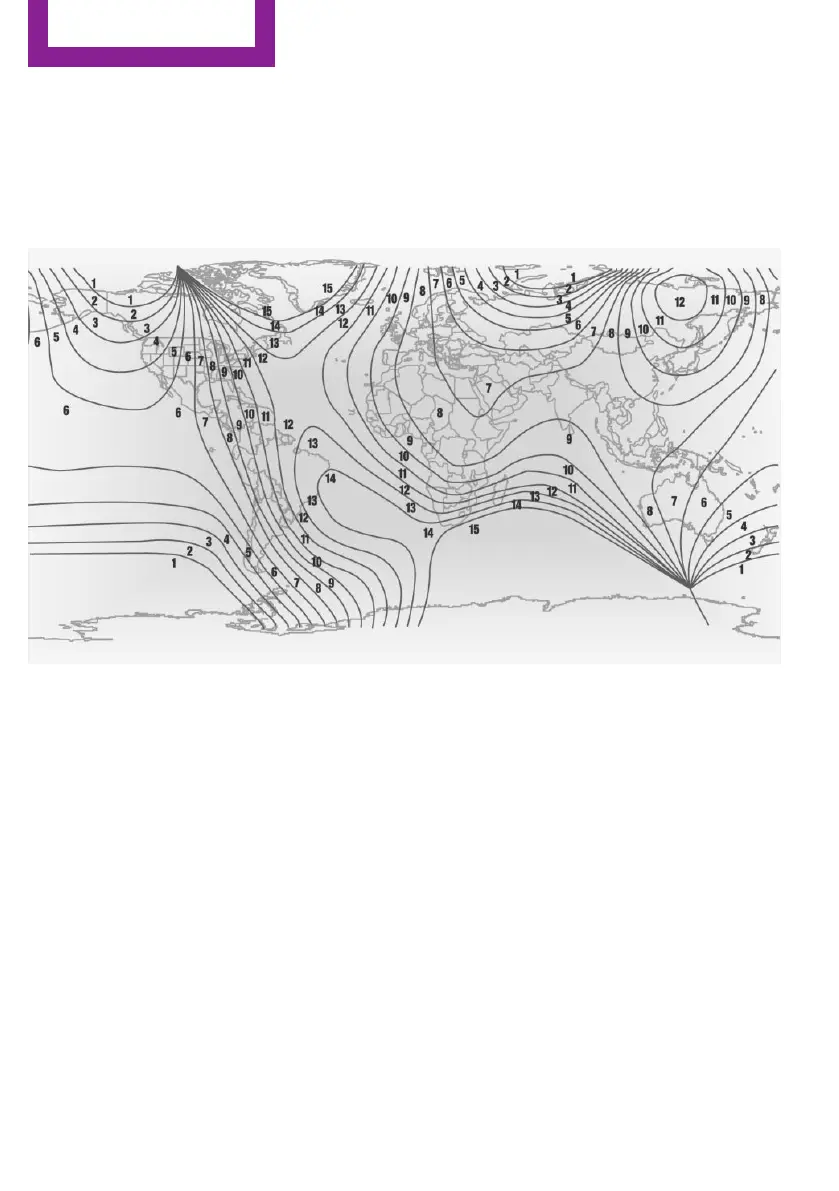 World map with magnetic zones