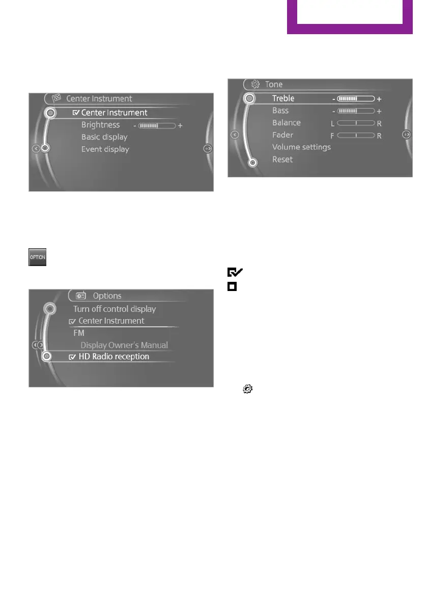 menu, e.g., for "Radio".