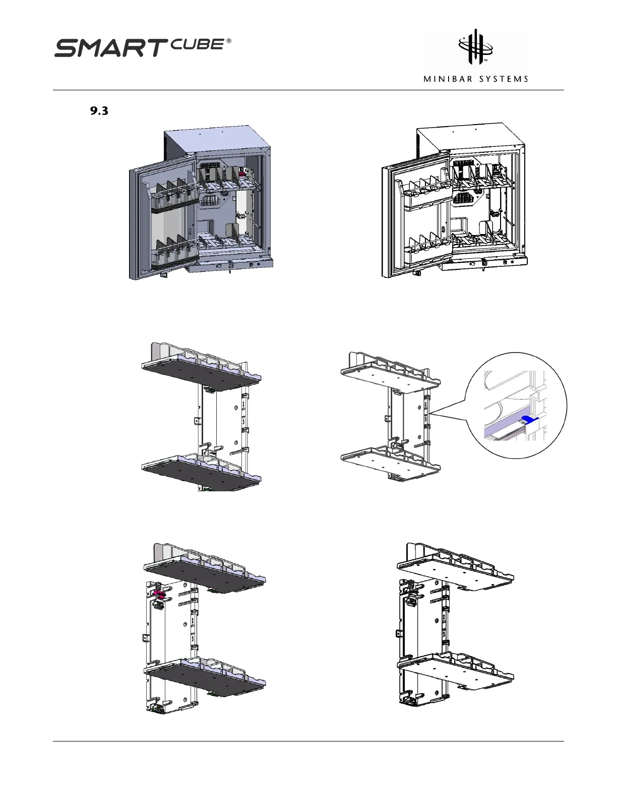 wall of the minibar. Lift up on the locking bar to