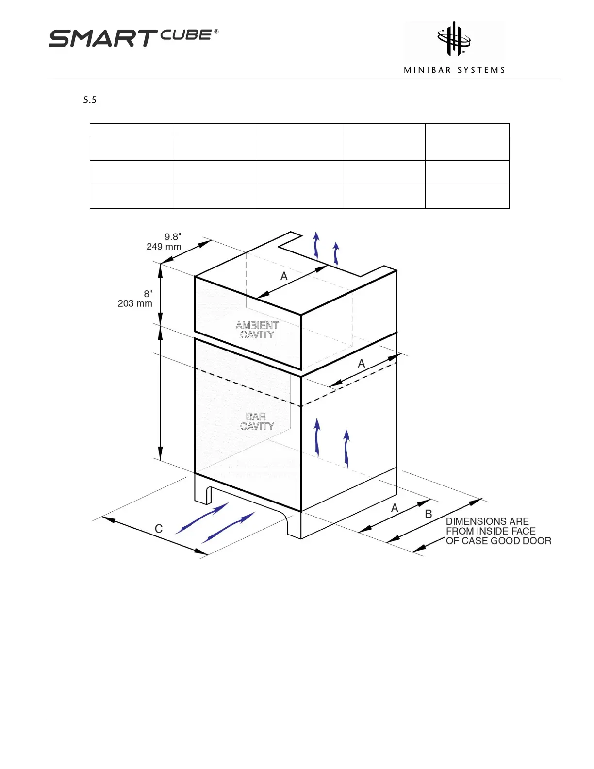 8” (203.2 mm) recommended for height of ambient housing section for snacks