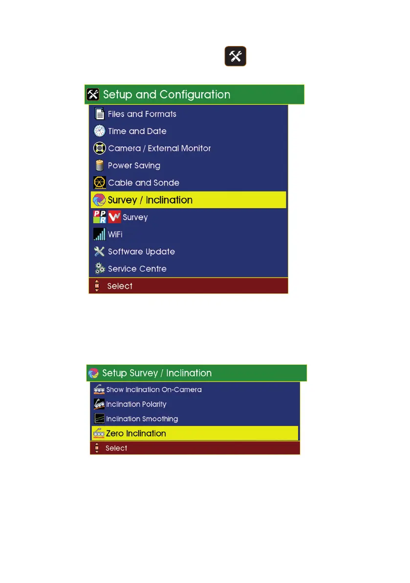 Select “Zero Inclination” and the rst stage of the zero calibration begins:
